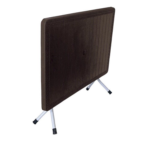 | توضیحات میز | میز تاشو با ابعاد 120x80x75 دارای پایه های فلزی ضخیم و تاشو ،دارای تحمل وزن 100 کیلوگرم با نقوش حصیری در لبه های میز |