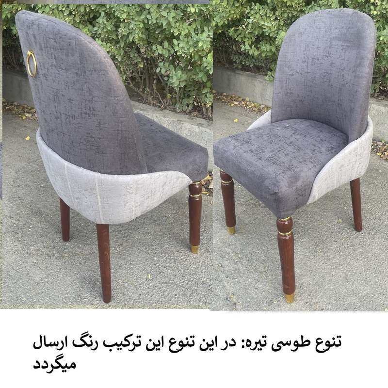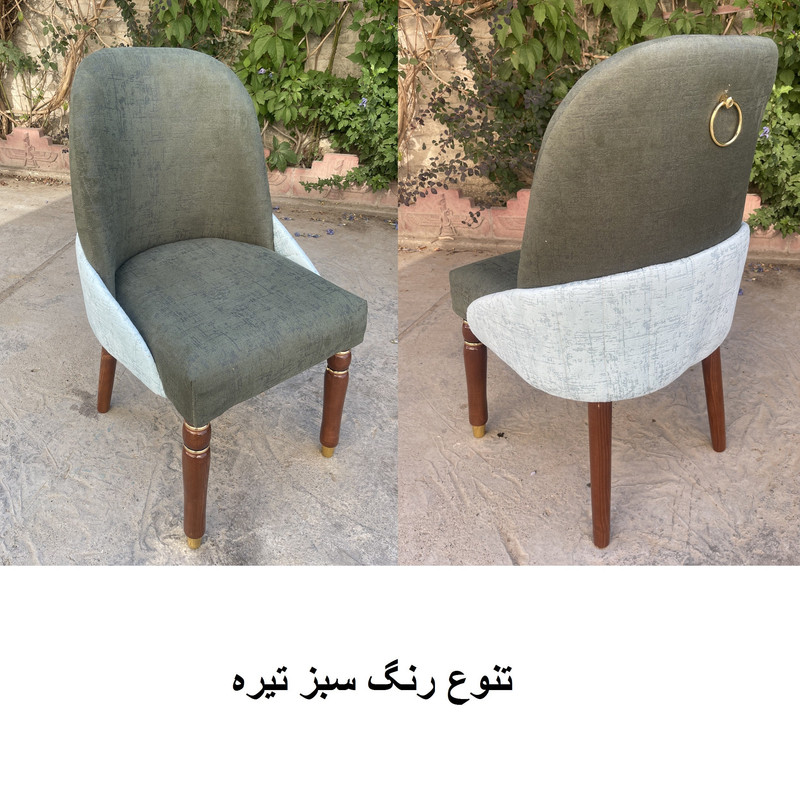 | توضیحات صندلی | رنگ بخش چوبی قهوه ای و ثابت میباشد. | تنوع رنگ انتخابی شما مربوط به رنگ پارچه صندلی ها می باشد. | جنس پارچه استفاده شده خارجی می باشد | ارتفاع صندلی از زمین تا نشیمن حدود 45 سانتی متر است ارتفاع کل صندلی(از زمین تا بالاترین قسمت پشتی) حدود 95 سانتی متر .| نشیمن فوق العاده راحت جنس زیر کار صندلی اسفنج (ابر).| ابعاد حدودی است |