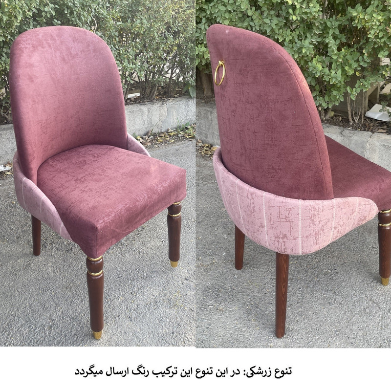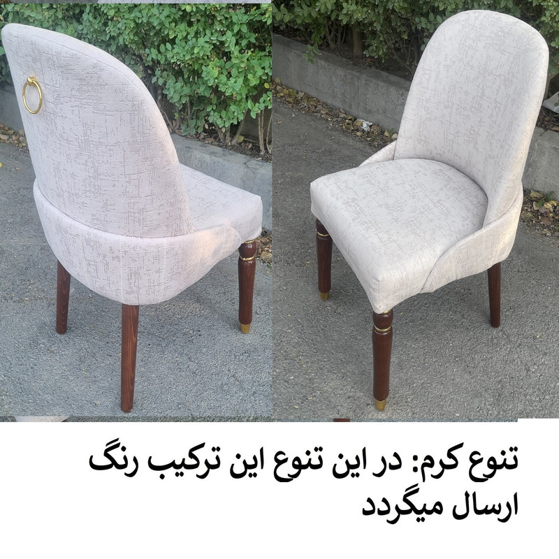 | سایر توضیحات | تنوع رنگ انتخابی شما مربوط به رنگ پارچه صندلی ها می باشد. | درجه بندی کیفیت : رنگ آمیزی و نجاری عالی | چوب روسی(نراد) | نوارهای به کاربرده شده طلایی بوده و ثابت است.| پایه های میز جداگانه ارسال میگردد. |