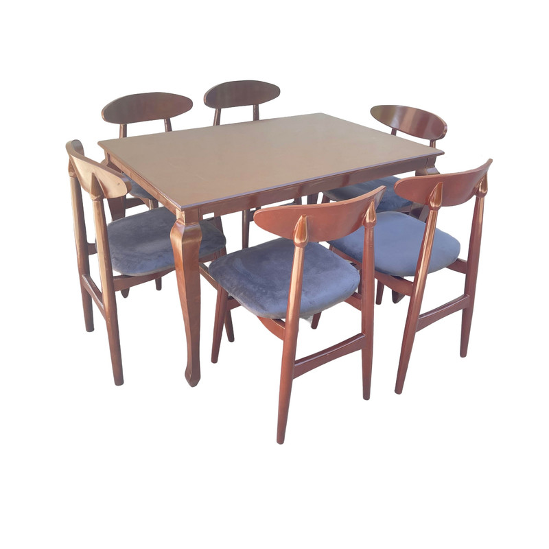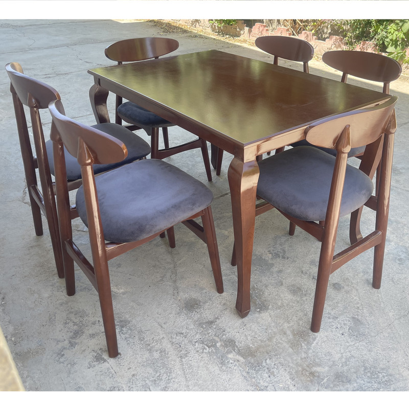 | سایر توضیحات | رنگ بخش چوبی این کار قهوه ای بوده و ثابت است، تنوع رنگ انتخابی شما مربوط به رنگ پارچه صندلی ها می باشد.| درجه بندی کیفیت : نجاری و رنگ آمیزی عالی.| نماهایی که در دید نیستند، به رنگ اصلی چوب است.همانند کف (ته) پایه های میز که به خود میز وصل میگردد |