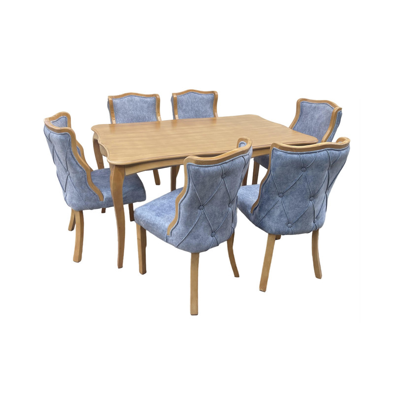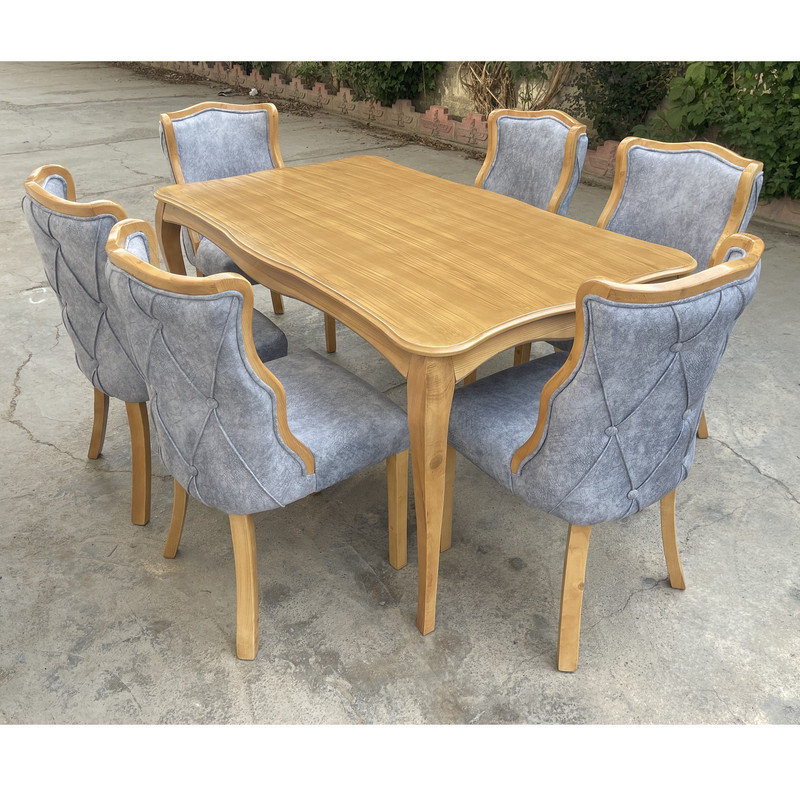 | سایر توضیحات | رنگ بخش چوبی این کار خودرنگ بوده و ثابت است(مطابق عکس)، تنوع رنگ انتخابی شما مربوط به رنگ پارچه صندلی ها می باشد.| ممکن است به دلیل نور عکاسی رنگها تفاوت جزئی داشته باشد.| به مشخصات دقیق محصول دقت کنید | درجه بندی کیفیت : نجاری و رنگ آمیزی عالی و بسیار مقرون به صرفه.| نماهایی که در دید نیستند، به رنگ اصلی چوب است.همانند کف (ته) پایه های میز که به خود میز وصل میگردد. ممکن است در هر سری تولید، رنگ چوب بدلیل ساخت دستی رنگ تفاوت جزئی داشته باشد.| |