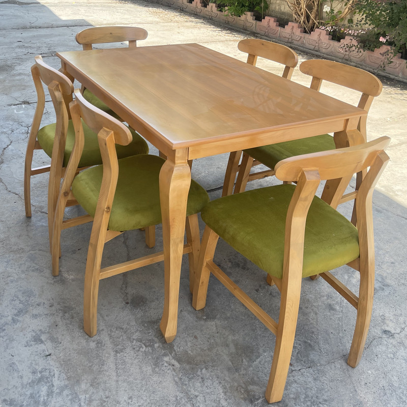 میز و صندلی های غذاخوری یکی از اساسی ترین نیازهای هر خانه می باشد که باید در خرید آن دقت و توجه کافی داشت که در عین اینکه جنس و کیفیت مناسبی دارد، قیمت آن نیز مناسب بوده و همچنین طراحی جذابی نیز داشته باشد، این میز و صندلی نهارخوری ارائه شده توسط گالری چوب آشنایی، با طراحی جدید و دارای زیبایی خاص یکی از جذابترین و شیکترین ستهای نهارخوری موجود در بازار است که برای فضای خانه بسیار مناسب می باشد و می توان زیبایی خاصی را با آن به خانه بخشید. این میز و صندلی مناسب 6 نفر بوده و رنگ بخشهای چوبی آن خود رنگ (طبق تصویر) بوده و ثابت است و رنگ پارچه بر اساس تنوع رنگ قابل انتخاب می باشد. جنس پارچه استفاده شده خارجی می باشد.