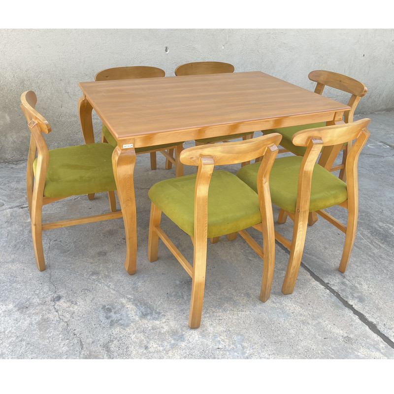 | سایر توضیحات | رنگ بخش چوبی این کار خود رنگ بوده(طبق تصویر) و ثابت است، تنوع رنگ انتخابی شما مربوط به رنگ پارچه صندلی ها می باشد.| ممکن است به دلیل نور عکاسی رنگها تفاوت جزئی داشته باشد.| به مشخصات دقیق محصول دقت کنید | درجه بندی کیفیت : نجاری و رنگ آمیزی عالی.| در رنگ ودرنگ رگه ها و گره های چوب نمایان و مشخص است.| نماهایی که در دید نیستند، به رنگ اصلی چوب است. |
