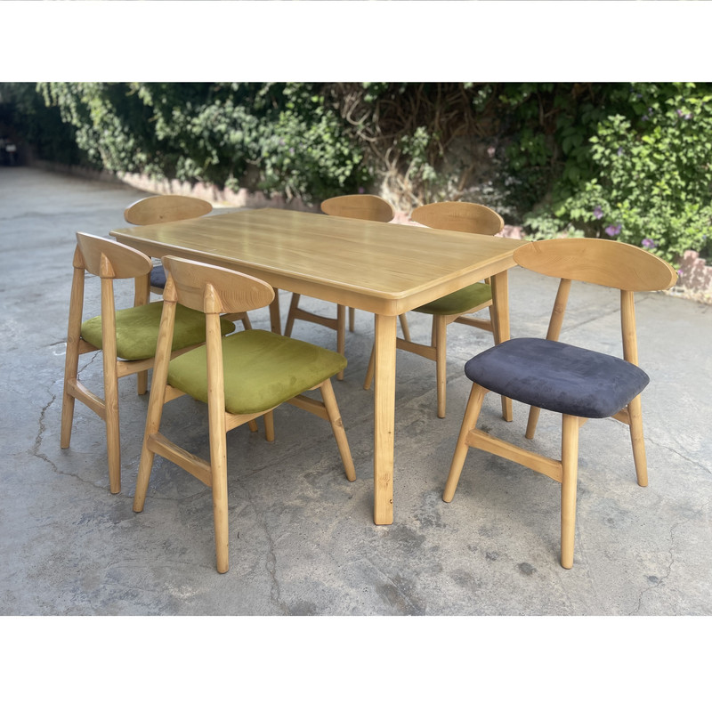 سایر توضیحاترنگ بخش چوبی خودرنگ بوده و ثابت میباشد. | تنوع رنگ انتخابی شما مربوط به رنگ پارچه صندلی ها می باشد. | درجه بندی کیفیت : رنگ آمیزی و نجاری عالی و مقرون به صرفه .| نماهایی که در دید نیستند، رنگ اصلی چوب است(همانند ته پایه های میز که از زیر به میز مونتاژ میشود) | ابعاد در حد 3الی4 سانتیمتر ممکن است خطا داشته باشد.| ممکن است موج صفحه متفاوت باشد.| امکان دارد برخی نقاط صفحه موجها برجسته باشد.| ممکن است در هر سری تولید، رنگ چوب بدلیل ساخت دستی رنگ تفاوت جزئی داشته باشد.| به مشخصات دقیق محصول دقت کنید. | ممکن است بدلیل عکاسی تفاوت جزئی در رنگها باشد.|