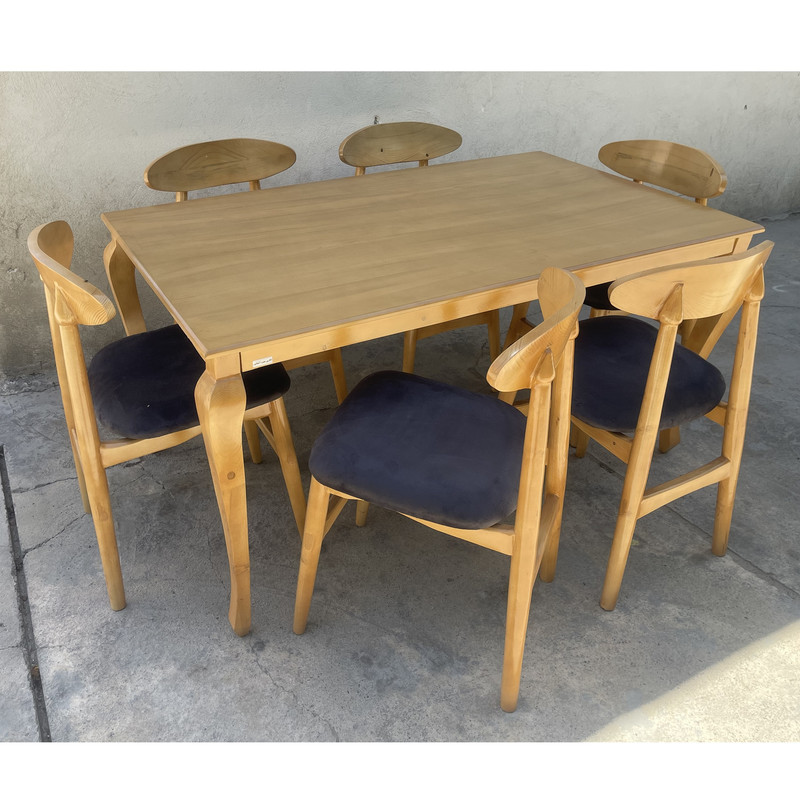میز و صندلی های غذاخوری یکی از اساسی ترین نیازهای هر خانه می باشد که باید در خرید آن دقت و توجه کافی داشت که در عین اینکه جنس و کیفیت مناسبی دارد، قیمت آن نیز مناسب بوده و همچنین طراحی جذابی نیز داشته باشد، این میز و صندلی نهارخوری ارائه شده توسط گالری چوب آشنایی، با طراحی جدید و دارای زیبایی خاص یکی از جذابترین و شیکترین ستهای نهارخوری موجود در بازار است که برای فضای خانه بسیار مناسب می باشد و می توان زیبایی خاصی را با آن به خانه بخشید. این میز و صندلی مناسب 6 نفر بوده و رنگ بخشهای چوبی آن خود رنگ (طبق تصویر) بوده و ثابت است و رنگ پارچه بر اساس تنوع رنگ قابل انتخاب می باشد. جنس پارچه استفاده شده خارجی می باشد.