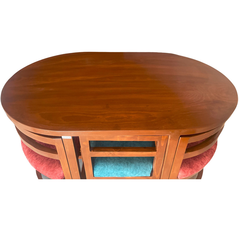میز و صندلی غذاخوری همواره یکی از نیازهای اساسی هر خانه میباشد، لیکن بدلیل کوچک شدن خانه ها، میز و صندلیهایی که فضای کمی را اشغال میکنند بسیار مفید بوده و جذابیت بسیار بالایی دارند، این نوع میز و صندلیهای کمجا یک محصول بسیار مفید و کارآمد و در عین حال با کمترین فضای اشغالی، یکی از بهترین محصولات تولید گالری چوب آشنایی است که با کیفیت بسیار بالا در حال تولید است. این محصول تحمل وزن بسیار بالایی داشته و جزء کارهای بسیار پرفروش می باشد و طرفداران زیادی دارد.