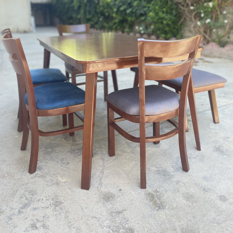 سایر توضیحات رنگ چوب ثابت و قهوه ای است(همانند تصویر) و تنوع رنگ انتخابی شما مربوط به رنگ پارچه صندلی ها می باشد. | درجه بندی کیفیت : رنگ آمیزی و نجاری عالی و مقرون به صرفه | نماهایی که در دید نیستند، به رنگ اصلی چوب است. همانند کف (ته) پایه های میز که به خود میز وصل میگردد || ممکن است موج صفحه متفاوت باشد.| امکان دارد برخی نقاط صفحه موجها برجسته باشد.| ممکن است در هر سری تولید، رنگ چوب بدلیل ساخت دستی رنگ تفاوت جزئی داشته باشد.| به مشخصات دقیق محصول دقت کنید| ممکن است بدلیل عکاسی تفاوت جزئی در رنگها باشد.