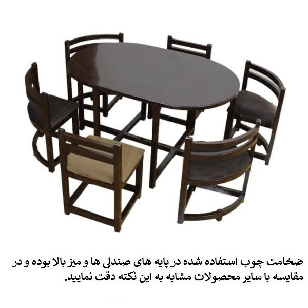 | سایر توضیحات | به ضخامت چوب استفاده شده در این محصول در مقایسه با سایر محصولات مشابه دقت فرمایید.| درجه بندی کیفیت : رنگ آمیزی و نجاری عالی و مقرون به صرفه.| نماهایی که در دید نیستند، به رنگ اصلی چوب است.| به مشخصات دقیق محصول از جمله ضخامت چوب دقت کرده و توجه کنید محصول با مشخصات ذکر شده را فقط فروشنده اصلی محصول با برند گالری چوب آشنایی ارائه مینماید. چوب روسی(نراد).| رنگ چوب قهوه ای تیره و ثابت.| تنوع رنگ انتخابی مربوط به رنگ پارچه صندلی ها است.| تنوع رنگ چند رنگ پارچه دو صندلی وسط کرم و صندلی های کناری طوسی خواهد بود. |