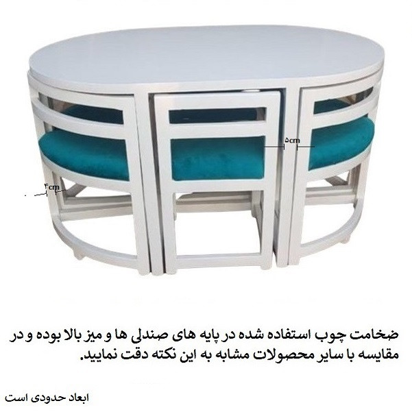 میز و صندلی غذاخوری کمجا یک محصول بسیار مفید و کارآمد و در عین حال با کمترین فضای اشغالی می باشد. این میز و صندلی های گالری آشنایی یکی از با کیفیت ترین و زیباترین محصولات است که با طراحی زیبایی که دارند، بسیار جذاب می باشند. این میز و صندلی ضخامت چوب استفاده شده در آن حدود 4-5 سانتی متر میباشد. این محصول تحمل وزن بسیار بالایی داشته و جزء کارهای بسیار پرفروش می باشد و طرفداران زیادی دارد. توجه کنید که این محصول دارای ضخامت چوب بالایی بوده و توسط فروشنده اصلی گالری چوب آشنایی با این کیفیت ارائه می گردد.