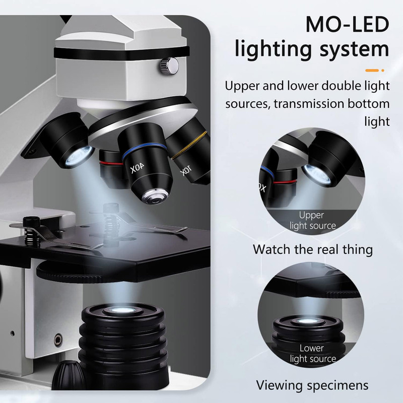 میکروسکوپ خانگی مدل 2000X New یک ابزار پیشرفته برای مشاهده و ثبت تصاویر میکروسکوپی با کیفیت بالا است. این مدل با ترکیب سیستم اپتیک دقیق، نورپردازی حرفهای و قابلیتهای دیجیتال، گزینهای مناسب برای آموزش، تحقیقات و ثبت تصاویر تخصصی محسوب میشود.سیستم اپتیک این دستگاه شامل بزرگنمایی 40X تا 1000X با عدسیهای آکروماتیک است که وضوح تصویر را افزایش داده و اعوجاج رنگی را کاهش میدهد. چشمی 25X قابل تعویض امکان مشاهده جزئیات بیشتر را فراهم میکند. همچنین، هلدر مخصوص موبایل به کاربران اجازه میدهد تا تصاویر و ویدیوهای میکروسکوپی را با کیفیت بالا ثبت کنند.در بخش نورپردازی، این مدل به نور LED قابل تنظیم مجهز شده که امکان تغییر شدت نور در دو جهت بالا و پایین را فراهم میکند. منبع تغذیه از طریق آداپتور برق 110V-240V تأمین شده که قابلیت استفاده در محیطهای مختلف را امکانپذیر میسازد.ویژگیهای دیجیتال این میکروسکوپ شامل ریموت بلوتوثی برای کنترل آسان دوربین موبایل و پایه ثابت موبایل با قابلیت تنظیم زاویه است که تجربه کاربری را بهبود میبخشد و امکان ثبت تصاویر بدون لرزش را فراهم میکندر بخش مشخصات فنی، این مدل دارای عدسیهای شیئی 4X، 10X و 40X بوده و از چشمی WF25X برای مشاهده دقیق نمونهها بهره میبرد. منبع نور LED با عمر طولانی کیفیت روشنایی را در طولانیمدت حفظ میکند. ابعاد دستگاه 22 × 18 × 35 سانتیمتر و وزن آن 2.5 کیلوگرم است که تعادل مناسبی بین قابلیت حمل و عملکرد حرفهای ایجاد کرده است.پکیج این محصول شامل میکروسکوپ New 1000X، هلدر موبایل با پایه قابل تنظیم، ریموت بلوتوثی برای عکاسی بدون لرزش، ابزار جانبی شامل پنس، اسلاید و لامل، آداپتور برق و کابل USB، و یک عدد چشمی 25X اضافه است که امکانات کاملی را برای کاربران فراهم میکند.