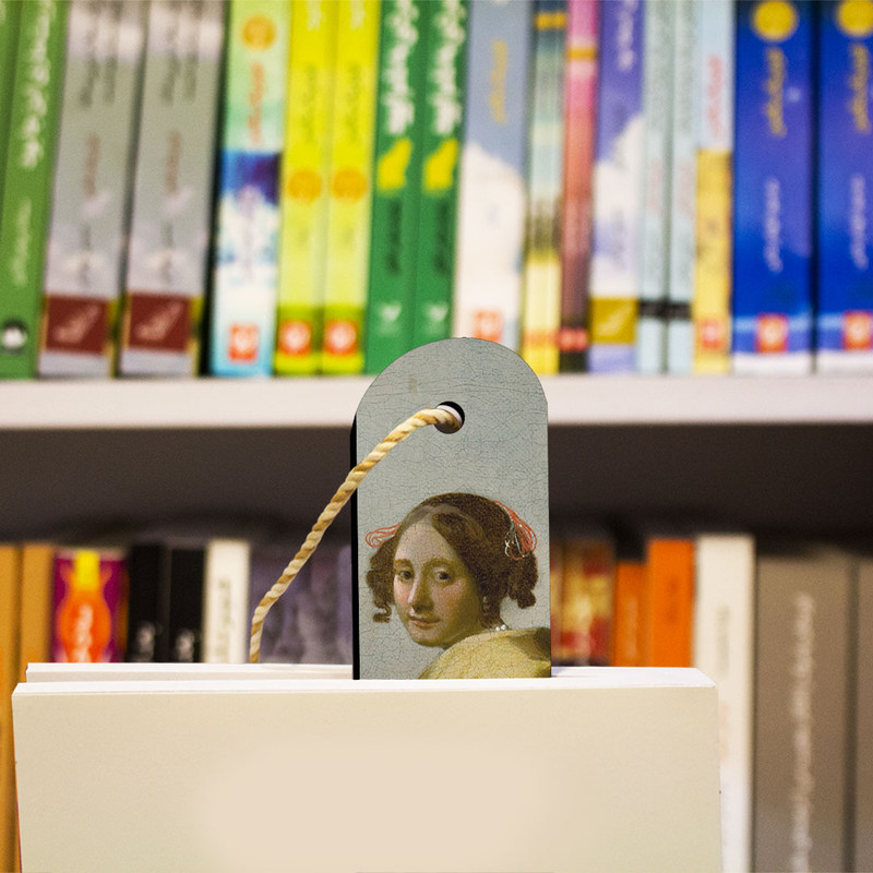 نشانگر کتاب ترمه طراحان ایده مدل زن جوان پشت ساز ویرژینال از ورمر کد art0593