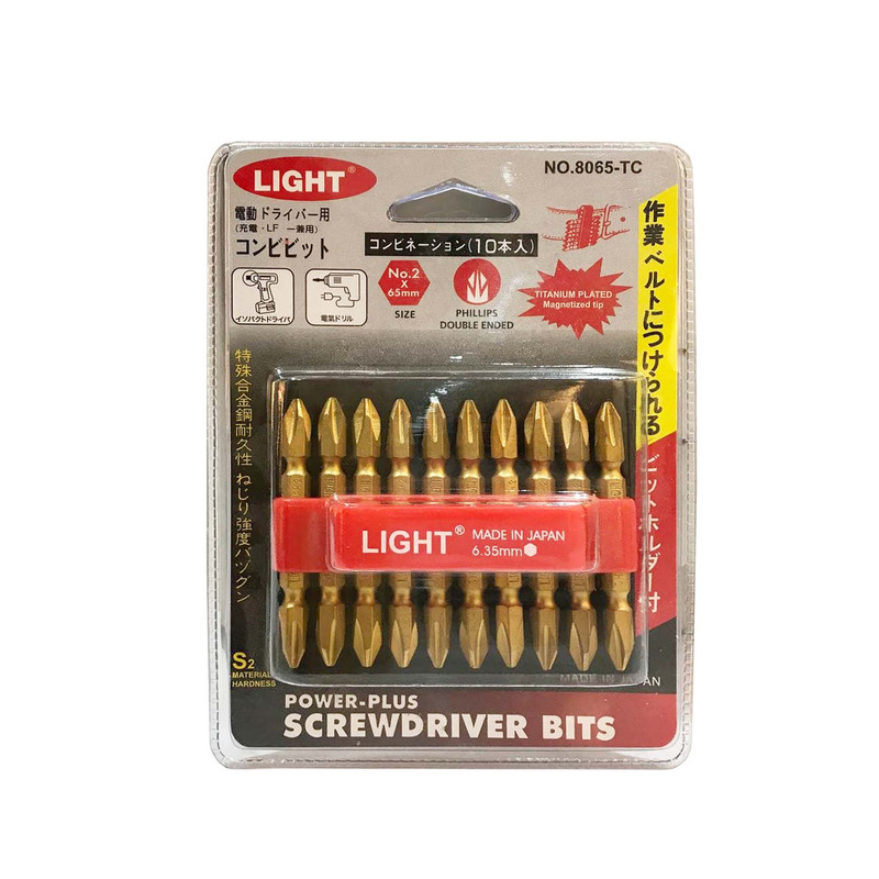 مجموعه 10 عددی سری پیچ گوشتی دوسر چهارسو تیتانیوم لایت مدل 8065-TC برند لایت ژاپن می باشد. جنس تیتانیوم این سر پیچ گوشتی مقاومت و استحکام بیشتری به این محصول می بخشد.