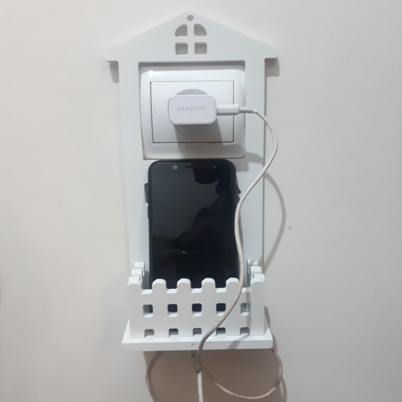 شلف دیواری جای شارژ گوشی همراه محصول ایرانی خونه خاص بوده که کاملا متناسب با اندازه استاندارد پریز برق طراحی شده و بدون میخ یا چسب روی پریز برق قرار می گیرد و محل مناسبی برای شارژ گوشی های همراه فراهم می کند.