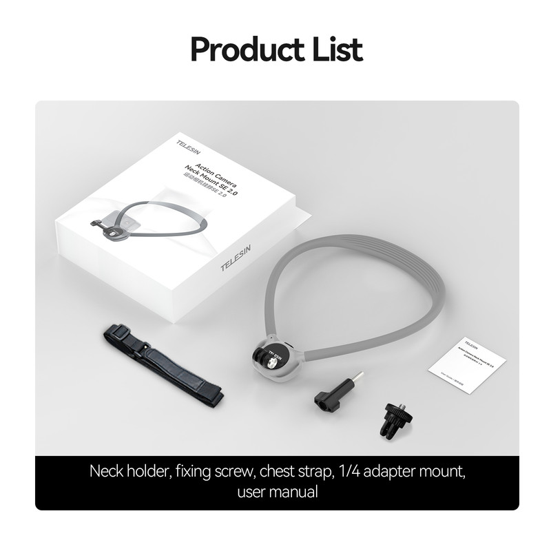 پایه بند گردن دوربین سیلیکونی ارتقا یافته تلسین مدل S2-HNB-09-GY یک نگهدارنده حرفهای برای فیلمبرداری بدون نیاز به دست است که با دوربینهای اکشن مانند GoPro، Insta360 و DJI سازگاری دارد. این پایه گردنی به شما امکان میدهد تا ویدئوهای POV (زاویه دید اولشخص) را با ثبات بالا و بدون لرزش ضبط کنید.