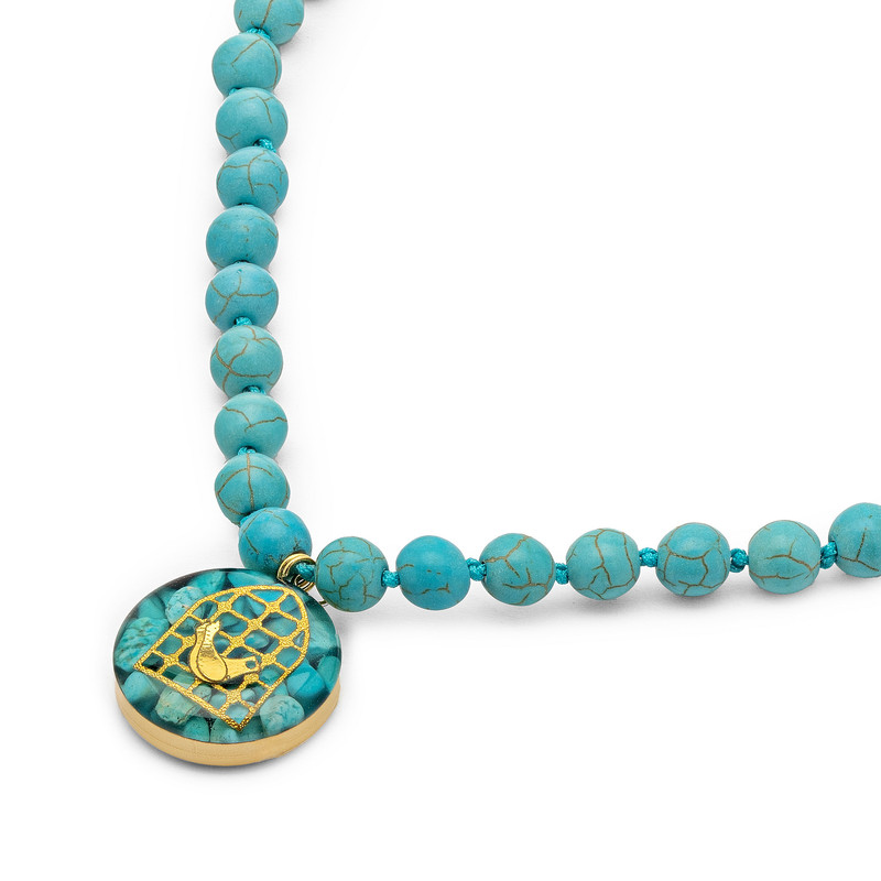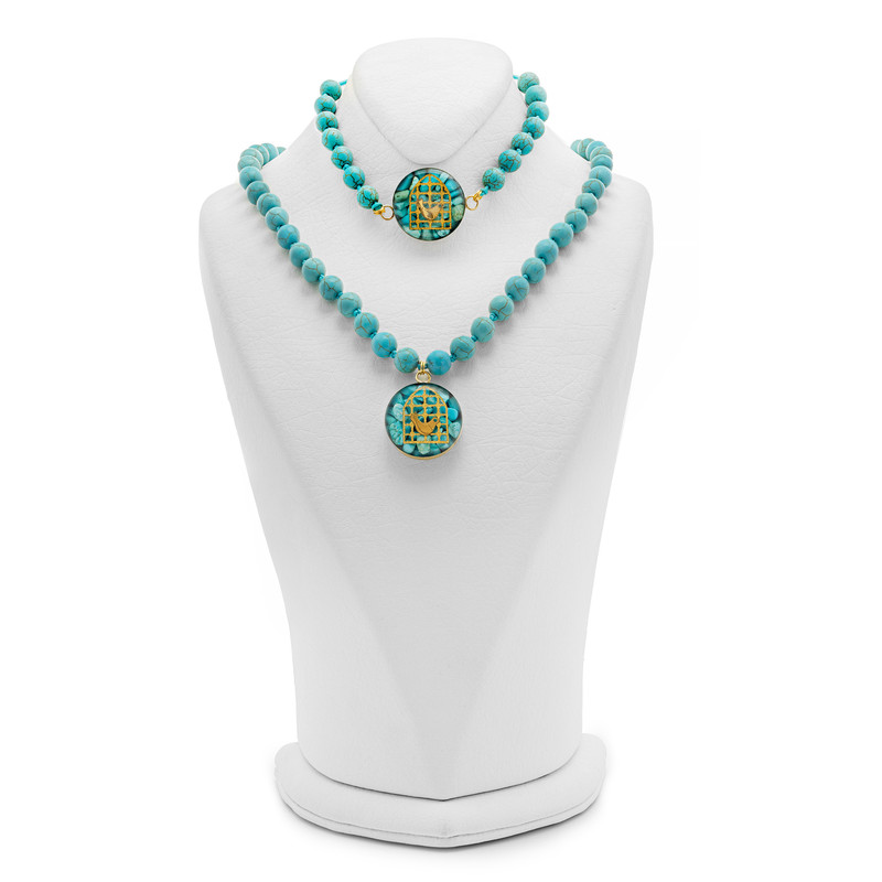 نیم ست مرغ آمین شامل یک گردنبند و دستبند است که با طرح نماد مرغ آمین ساخته شده است. گردنبند از سنگ فیروزه با نماد مرغ آمین با روکش طلا طراحی شده است، و طول مناسب برای قرارگیری خوب بر روی گردن دارد. دستبند نیز دارای مهره‌های فیروزه‌ای و قفل گره‌ای قابل تنظیم است که به راحتی روی مچ دست قرار می‌گیرد و سایز آن قابل تغییر است. این نیم ست، مناسب برای استفاده روزمره و همچنین به عنوان هدیه‌ای خاص برای عزی...