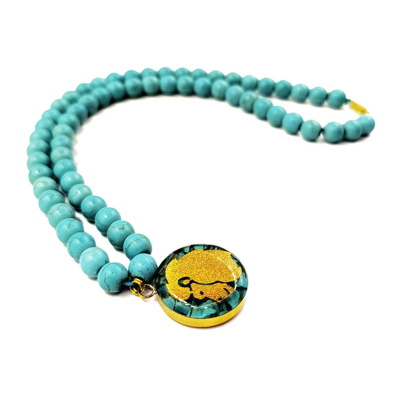 سمبل ماه مرداد شیر است. محصولات دستساز آلتین هنر، حس و انرژی بی نظیر هنر ایرانی را در نیم ست فیروزه ماه مرداد خلاصه کرده است. درخشش ورق طلای طرح شیر در وسط گردنبند و دستبند سنگ خوش رنگ فیروزه، همیشه مثل مشعل آتش در حال شعله‌ور شدن است.