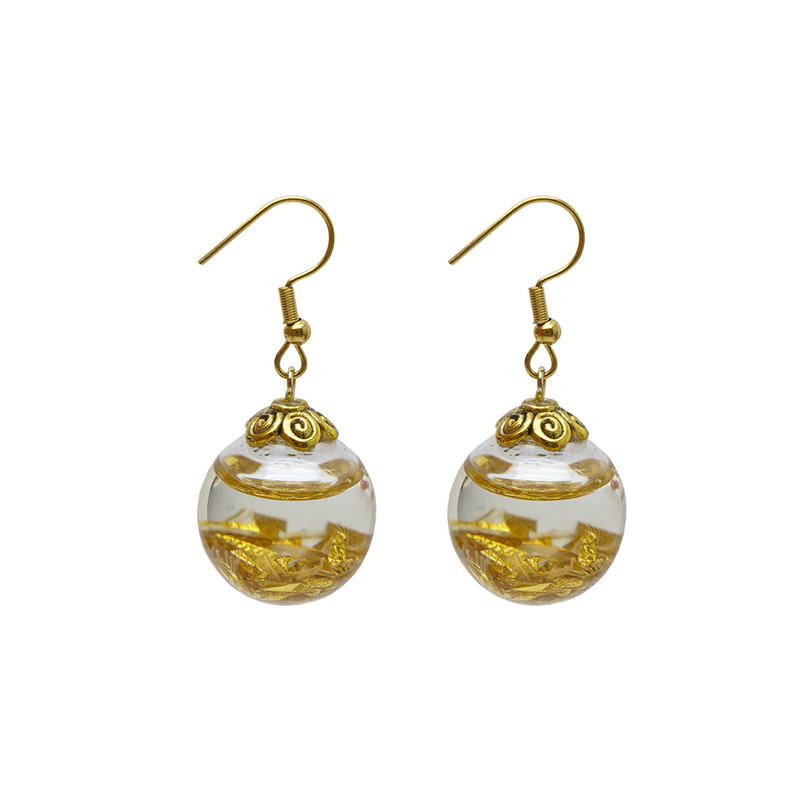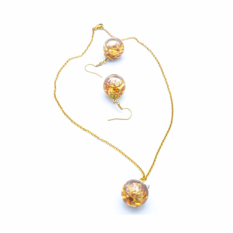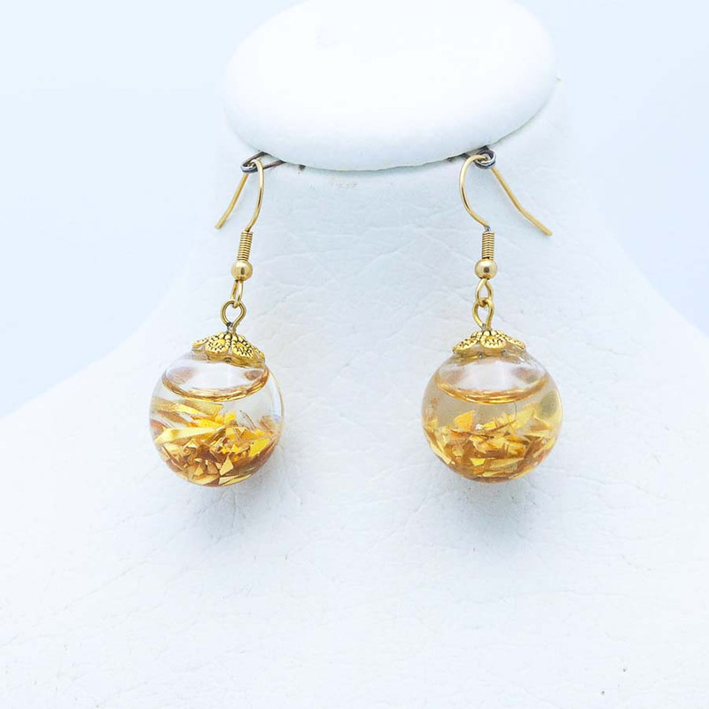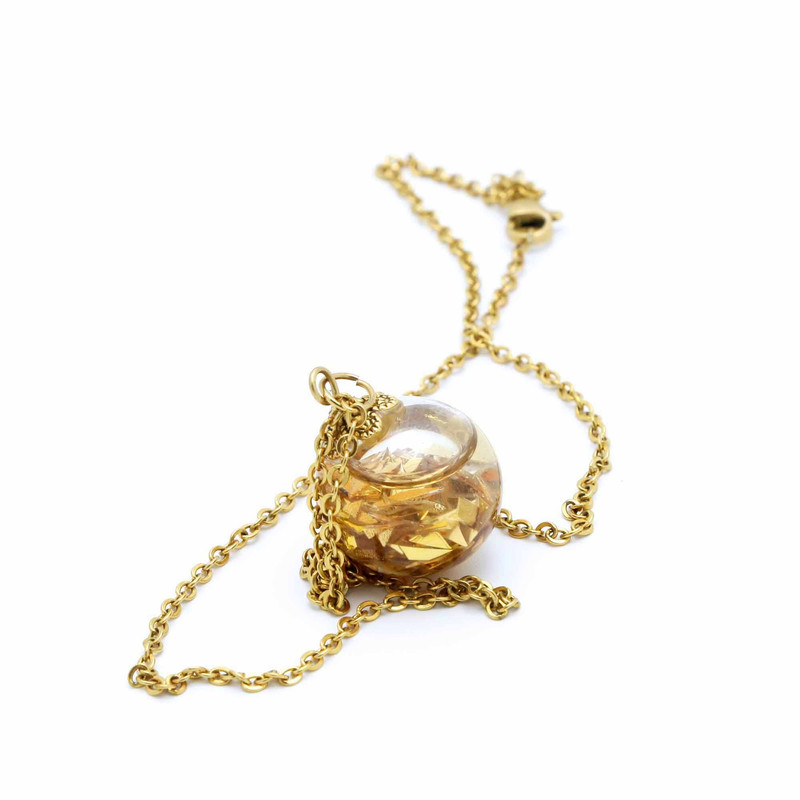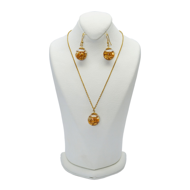 براده های طلای 24 عیار در داخل محفظه شیشه ای و آب می تواند هر بیننده ای را مجذوب خود کند. با قدم هایتان درخشش گوشواره و گردنبند ملموس شده و شما را ستاره دنباله دار میهمانی می کند!