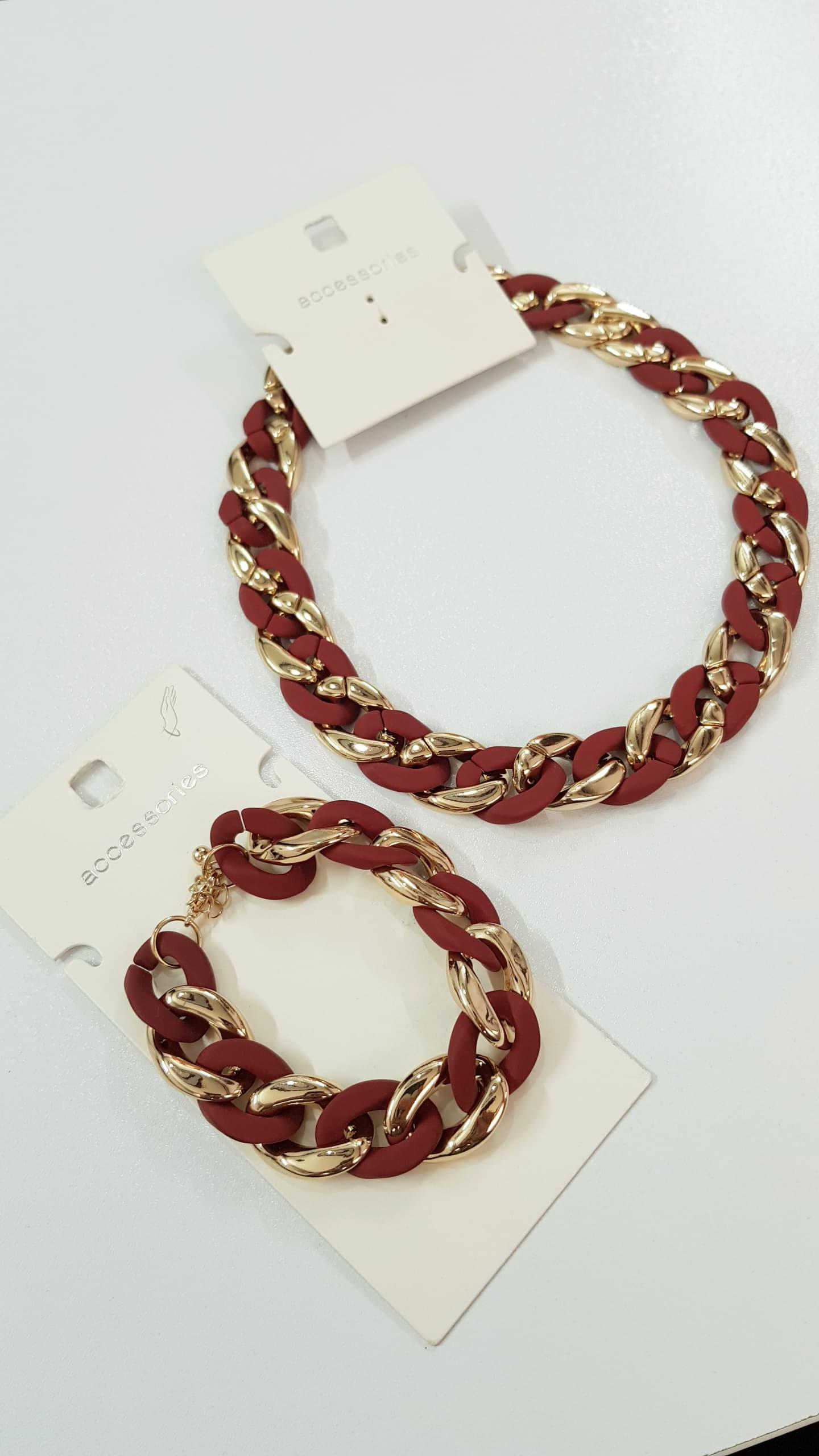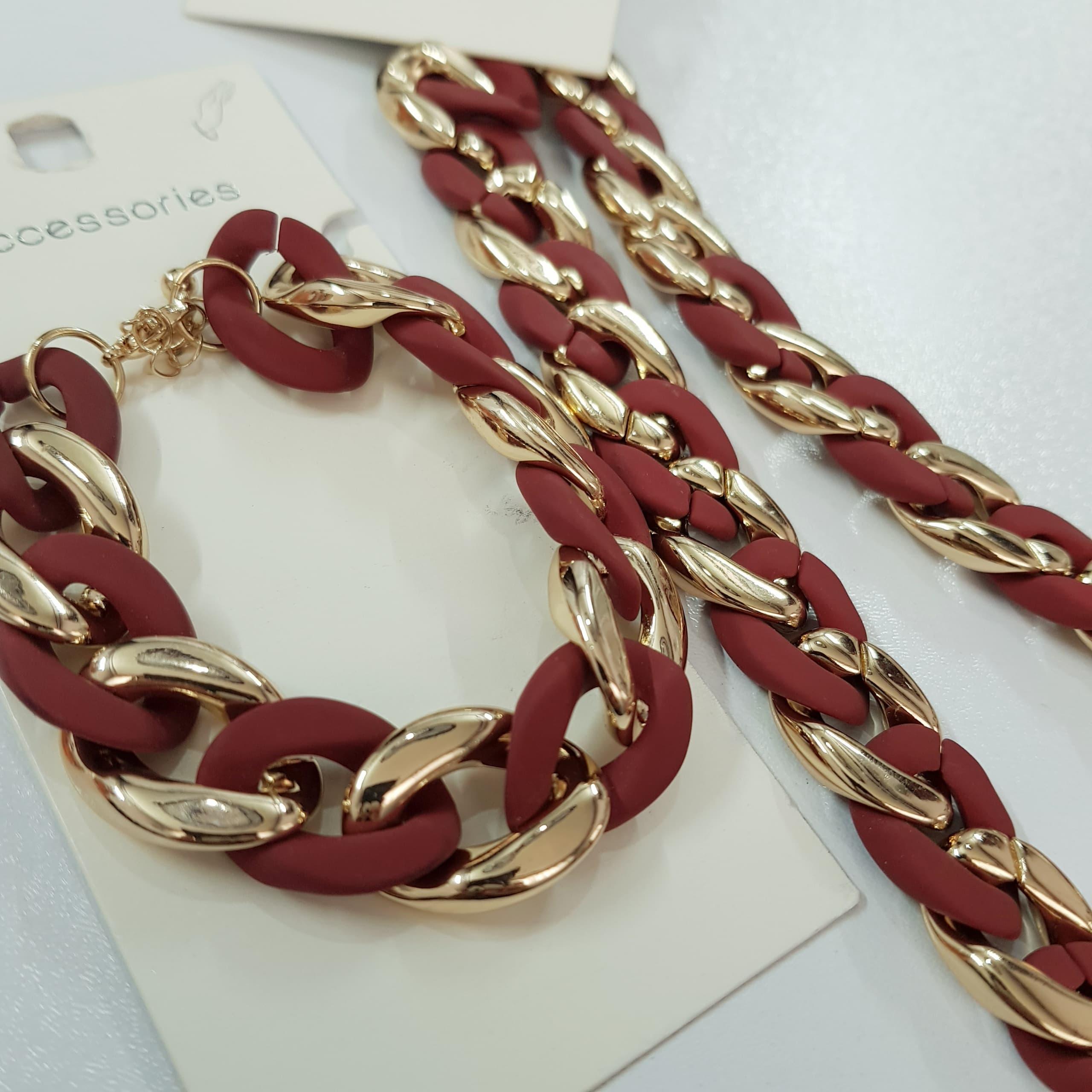 نیم ست یلدایی کارتیه دستبند و گلوبند طلایی زنجیر درشت ، فوق العاده زیبا و ترند رنگ ثابت و ضد حساسیت برند ACC تحت لیسانس آلمان
