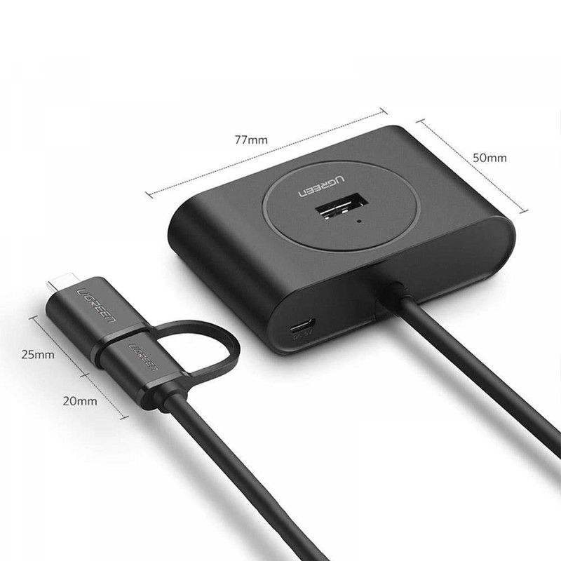 هاب چهار پورت USB 3.0 یوگرین مدل 40850-CR113 محصولی باکیفیت از برند یوگرین است که دقیقاً برای پاسخ به این نیاز شما طراحی شده است. یک سر این هاب رابط USB 3.0 قرار گرفته و بر روی بدنه آن چهار درگاه USB 3.0 قرار دارد. سرعت انتقال اطلاعات بر روی این هاب، 600 مگابایت بر ثانیه است و اطلاعات شما را با سرعت بالایی انتقال میدهد. از جمله ویژگیهای این هاب میتوان به وجود یک تبدیل USB 3.0 به Type-c از نوع OTG اشاره کرد که به کمک آن میتوانید این هاب را به دستگاههای دارای Type-c متصل کنید. فهرستی از این دستگاهها در زیر آمده است. همچنین طول یک متری کابل این دستگاه کمک میکند از آن در محیطهای مختلف به سادگی استفاده کنید.