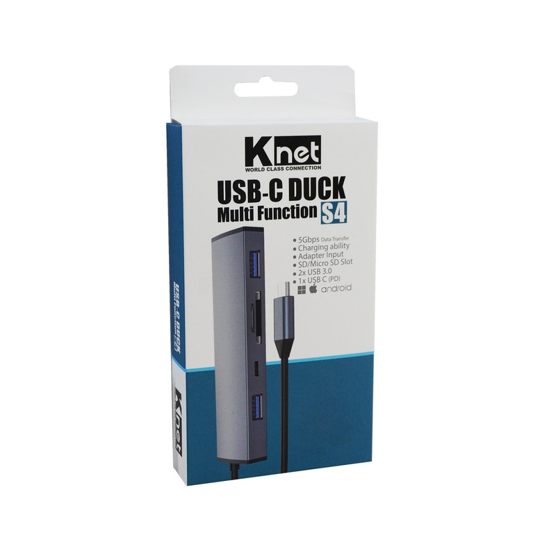 هاب 5 پورت تایپ سی مدل s4 برند کی نت (تبدیل چندکاره) دارای دو عدد پورت USB3.0 ، یک عدد پورت SD ، یک عدد پورت Micro SD Slot ، یک عدد پورت Type C با فناوری PD می باشد .