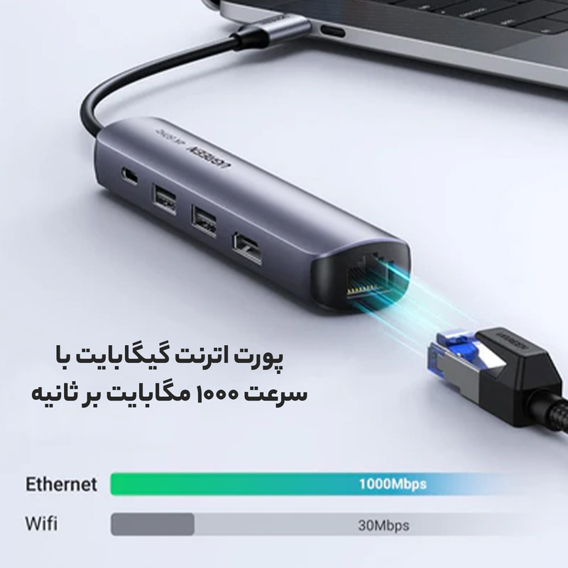 وضوح خروجی اتصال HDMI این هاب اترنت USB C تا 4K@30Hz است. با این آداپتور چند پورت USB C هاب می توانید از پخش ویدیوی پر جنب و جوش Ultra HD لذت ببرید.