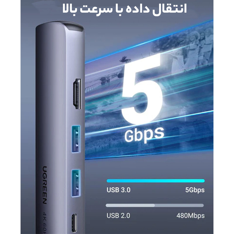 | سرعت انتقال دادهها | یک درگاه LAN گیگابیتی، اتصالی پایدار با نهایت سرعت 1,000 مگابیت بر ثانیه رقم میزند - با استفاده از درگاه HDMI موجود بر روی این هاب، تصویر لپتاپ خود را با حداکثر وضوح 4K (3840x2160) و نرخ بروزرسانی 30 فریم بر ثانیه، بر روی نمایشگرهای بزرگ مشاهده کنید. - دارای دو عدد درگاه USB 3.0 Type-A با سرعت انتقال داده 5 گیگابیت بر ثانیه استفاده از این هاب به هیچگونه درایور یا منبع تغذیه خارجی نیاز ندارد و تنها با متصل کردن آن به درگاه Type-C لپتاپ خود، میتوانید از امکانات آن لذت ببرید. |