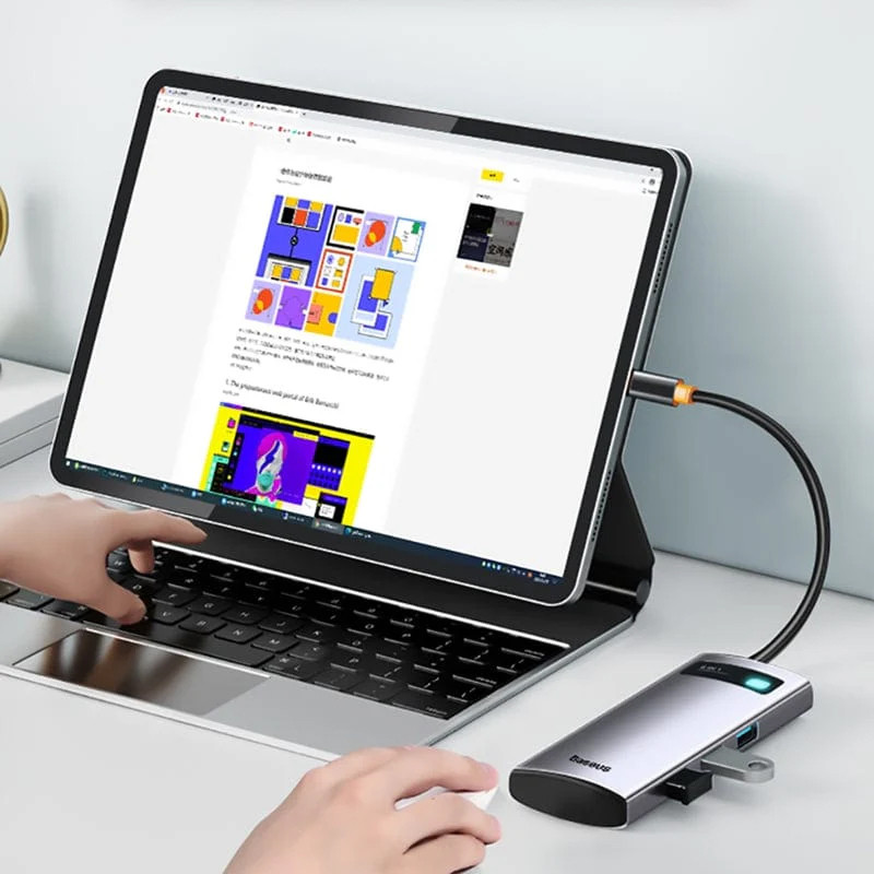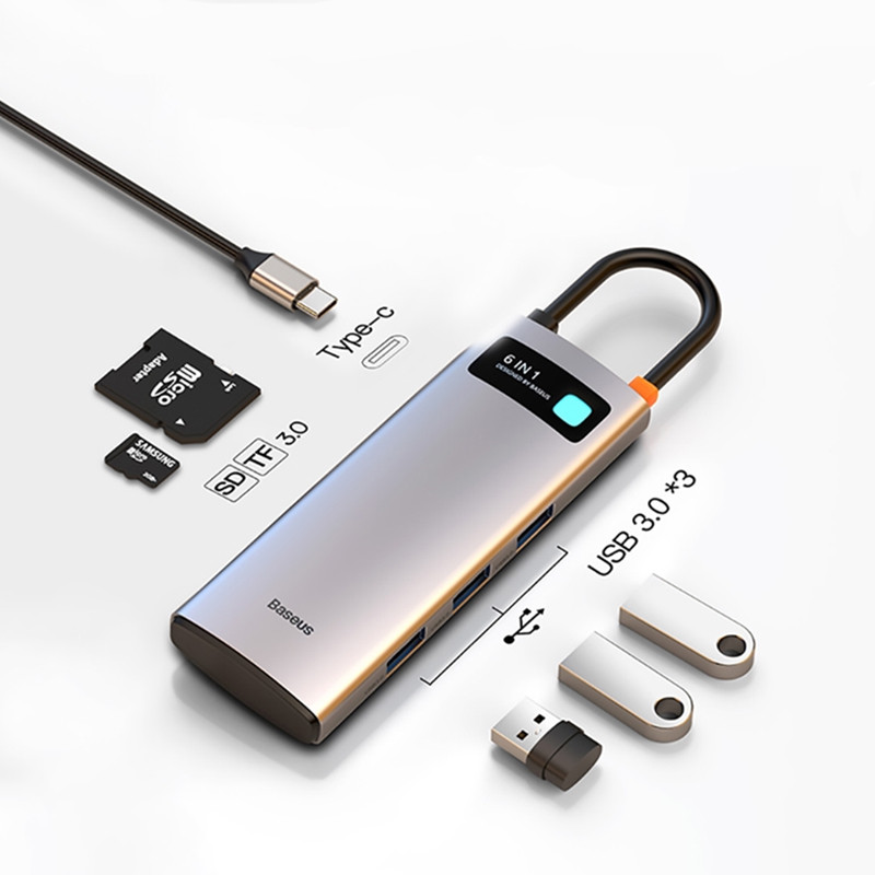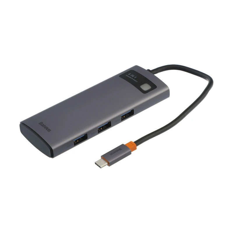 بیسوس یک برند معروف و پر مخاطب در زمینه تولید لوازم جانبی گوشی موبایل، تبلت و سایر وسایل دیجیتال می باشد و همانطور که می دانید هاب ابزاری است که با اتصال آن به دستگاه خود می توانید از خروجی های متنوعی بهره مند شوید و نیاز خود به در اختیار داشتن پورت های مختلف در زمان های مورد نیاز را برطرف کنید. برند بیسوس همانطور که پیش تر اشاره کردیم به طور تخصصی در زمینه تولید لوازم جانبی با کیفیت فعالیت دارد و تنوع زیادی از هاب ها را به کاربران ارائه می دهد. هاب 6 پورت USB-C بیسوس مدل WKWG030213 از جدیدترین تولیدات این شرکت است که به واسطه این هاب و با در اختیار داشتن درگاه های مختلف میتوانید دستگاه های بیشتری را به سیستم خود متصل کنید و محدودیتی نداشته باشید. هاب 6 پورت بیسوس دارای سه پورت USB3.0، یک پورت Type-C (PD) و دو پورت کارت حافظه SD/TF است که سرعت پورت USB3.0 برابر با 5Gbps، توان پورت تایپ سی PD برابر با 100 وات و سرعت پورت کارت حافظه 104 مگابایت بر ثانیه می باشد که به خوبی نیاز شما را برطرف خواهد کرد و از بابت سرعت نگرانی نخواهید داشت. نکته مهم این است که بهرهمندی از هر کدام از این درگاه ها به سیستم شما نیز بستگی داشته و باید دستگاه مورد نظر شما از این قابلیت ها پشتیبانی کند. هاب 6 پورت USB-C بیسوس مدل BS-0H042 ابعاد 115×44.5×16 میلی متر و وزنی حدودا 82 گرمی دارد که موجب راحتی حمل آن در انواع کیف های دستی می شود.