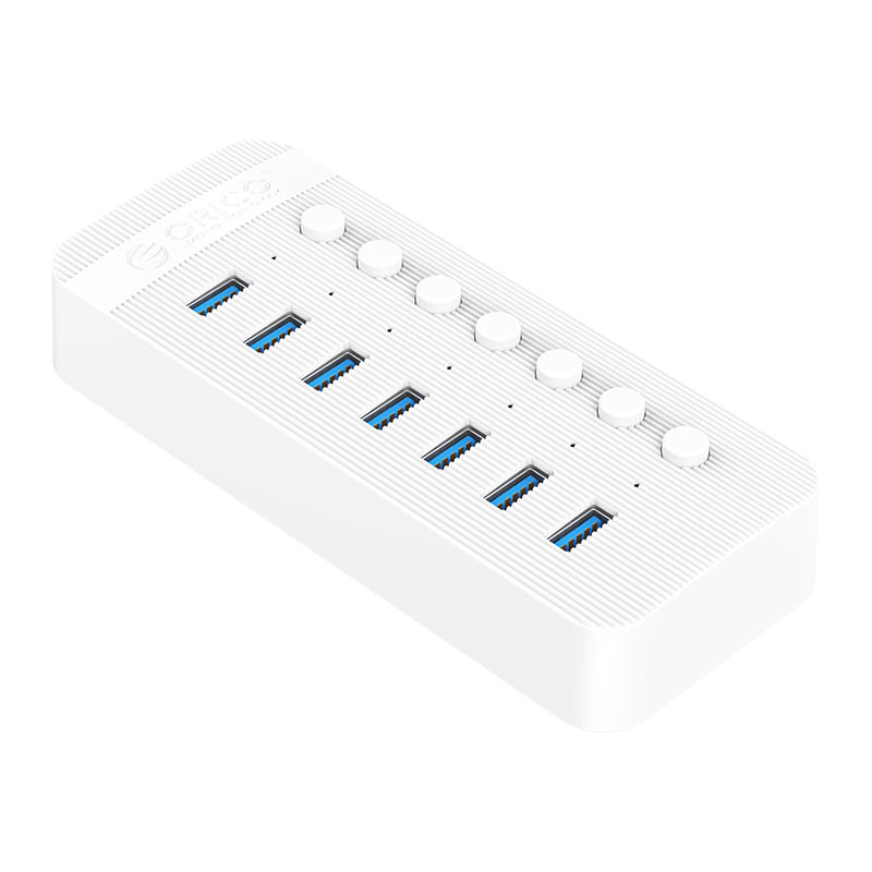 هاب 7 پورت USB 3.0 اوریکو مدل CT2U3-7AB میتواند در بسیاری از مکانها و کارها برای شما کارایی بسیار مفیدی داشته باشد. هر روز دستگاه جدیدی به بازار عرضه میشود که احتیاج به اتصال به کامپیوتر دارد و این نیاز را برای ما بیشتر و پررنگتر میکند تا دستگاهی را داشته باشیم تا بتواند چند دستگاه ذا بهصورت همزمان هم به کامپیوتر متصل کند و هم شارژ کند. اگر شما هم برای کامپیوتر یا دستگاهتان از کمبود پورت گلهمند هستید، راهحلتان استفاده از هاب است. یکی از برندهایی که اقدام به تولید هاب کرده است، اوریکو است. از محصولات این شرکت میتوان به هاب 7 پورت USB 3.0 اوریکو مدل CT2U3-7AB اشاره کرد. این هاب دارای کیفیت بالایی است و میتوانید با کلیدهای تعبیه شده روی آن ارتباط هر پورت USB را کنترل کرد. این مدل به 2 پورت تامین برق و 7 پورت USB 3.0 مجهز شده است. سرعت انتقال این هاب 5Gbps است. این کالا امکان اتصال لوازم جانبی مختلفی مانند موس ، صفحه کلید ، هارد اکسترنال و بسیاری دیگر را برای شما فراهم میکند. این محصول از سیستمعاملهای مکینتاش، ویندوز و لینوکس پشتیبانی میکند. این مدل به تراشه هوشمند VL817 مجهز شده است. بدنه این هاب از پلاستیک ABS ساخته شده است.