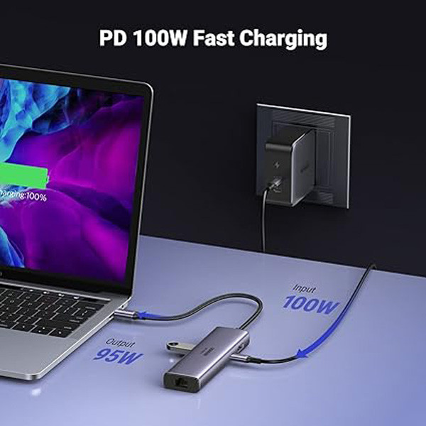 | امکانات و قابلیتها | قابلیت شارژ تا 100W دارای درگاه USB-C PD درگاه SD و TF درگاه HDMI درگاه RJ45 2 پورت USB-A ورژن USB3.0 |
