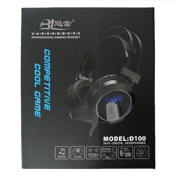 هدست مخصوص بازی بی ال مدل D100 دارای یک پورت USB جهت تامین برق و دو جک 3.5 میلی متری جهت میکروفون و صدا می باشد. صدای خروجی از این هدست کیفیت بالایی داشته و فرکانس 20 تا 20000 را پوشش می دهد. زیبایی و جذابیت این هدست با نور LED که از آن منتشر می شود، دو چندان شده و با اغلب سلیقه ها سازگار است.