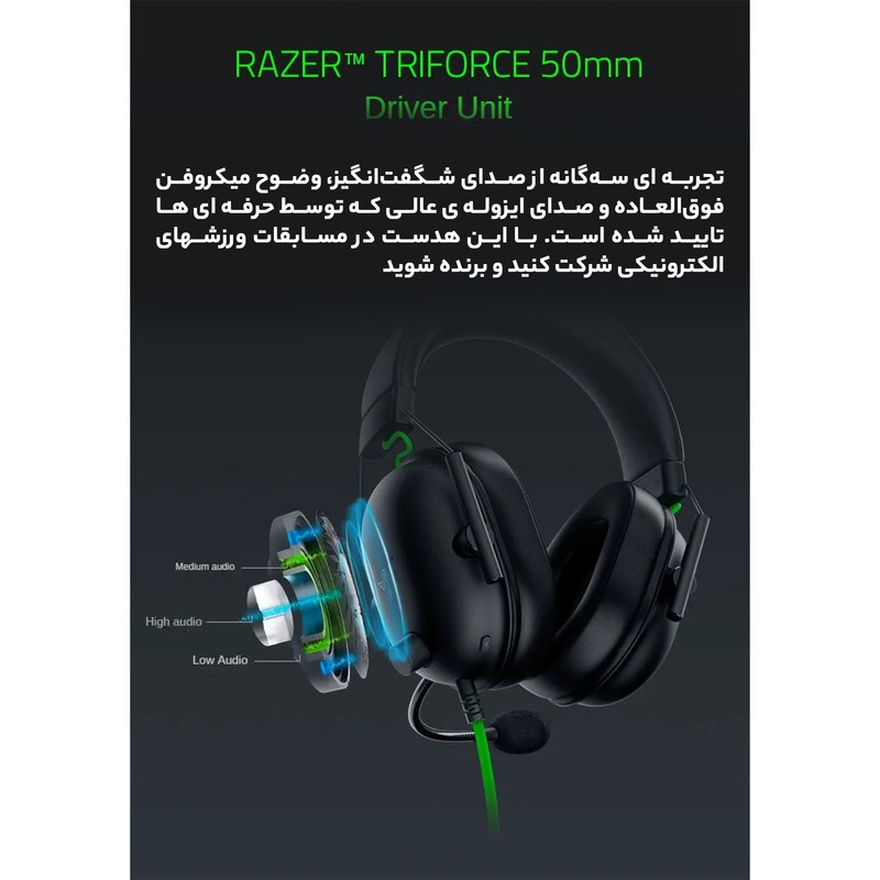 جدیدترین هدست گیمینگ ریزر در سال 2020 مدل BlackShark V2 X برای طرفداران برند محبوب ریزر ارائه شده است. این محصول با طراحی خاص ریزر و با کیفیت فوق العاده از صدای فراگیر 7.1 پشتیبانی میکند. هدست بلک شارک بسیار سبک بوده و با حدود 240 گرم وزن ، در استفاده طولانی مدت ایجاد خستگی نمی کند. ریزر یک پیچ آنالوگ تنظیم حجم صدا نیز در این محصول تعبیه کرده است که به راحتی میتوان از آن استفاده کرد. طراحی و ساخت قسمت گوشی به همراه متریال چرمی هوشمند ، هم از نویز محیط به خوبی جلوگیری میکند و هم وضعیت راحتی با گردش هوا برای گوشها بوجود می آورد. طراحی زیبای کابل 3.5 میلیمتری به رنگ سبز خاص ریزر ، صدای 360 درجه ، استفاده از متریال دارای حافظه برای راحتی سر و گوش ها ، درایور بسیار بزرگ 50 میلی متری تیتانیومی ، هسته فلزی برای هدبند ، نویز کنسلینگ میکروفون ،... از امکانات بی نظیر این هدست ارزشمند می باشد.