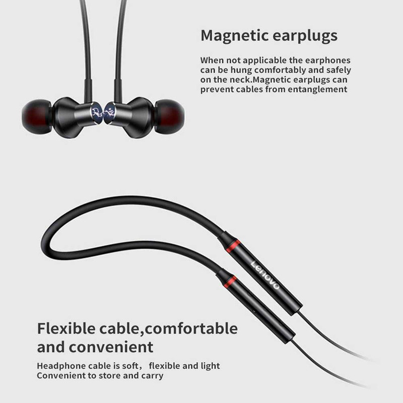 سری های هندزفری Lenovo HE05x به صورت تو گوشی طراحی شده اند و زاویه ای 45 درجه دارند و دارای سری های سیلیکونی می باشند تا به راحتی داخل گوش قرار بگیرد و دقیقاً بر اساس ارگونومی گوش طراحی شده تا کاربر در راحت ترین حالت ممکن به گوش دادن موسیقی بپردازد. همان طور که اشاره شد، سری های این محصول دارای زاویه ای 45 درجه بوده که باعث شده تا هندزفری بدون هیچگونه مزاحمتی داخل گوش کاربر قرار گیرد و هرگز از گوش آن جدا نشود.بر روی بدنه هندزفری HE05x یک قسمت کنترل قرار دارد که شامل 3 کلید فیزیکی بوده و وظیفه آن ها تغییرات موسیقی و ولوم، مدیریت تماس ها و پخش و قطع آهنگ می باشد و این امر بدون نیاز به منبع پخش (برای مثال: خود گوشی) انجام می پذیرد. یکی از نقاطی که می توان دقت کمپانی لنوو را در آن مشاهده کرد دو سری تل این محصول می باشد ، زیرا بر روی هر دو سر یک قسمت ضخیم تر قرار داده تا تعادل این محصول حفظ شود و فرم قرینه هندزفری کمک می کند تا بتوانید بدون جابجا شدن و متمایل شدن هندزفری به یک سو، از آن استفاده نمایید.یکی از دغدغه های امروز دزدیده شدن گوشی همراه به هنگام مکالمه است که با استفاده از این محصول می توانید با خیال راحت مکالمه ای لذت بخش داشته باشید، در حالی که گوشی درون جیب شما است. در طراحی این هندزفری از یک میکروفون HD استفاده شده که باعث شده کاربر تجربه یک مکالمه شفاف و بدون نویز را تجربه کند.هندزفری بلوتوث Lenovo HE05x Hanging دارای یک باتری داخلی بوده که در مدت زمان 2 ساعت به شارژ کامل خود رسیده و بعد از آن قادر است به مدت زمان 8 ساعت برای موسیقی و مکالمه به همراه شما باشد و البته این نکته قابل ذکر است که این مدت زمان برای زمانیست که با ولوم 50 درصد به گوش دادن موسیقی بپردازید. دامنه فرکانس این محصول 20-20000HZ بوده که باعث شده تا تمامی صدا های زیر و بم را دریافت کرده و این امر باعث شده تا انواع سبک های موسیقی را با جزئیات کامل به گوش شنونده برساند.