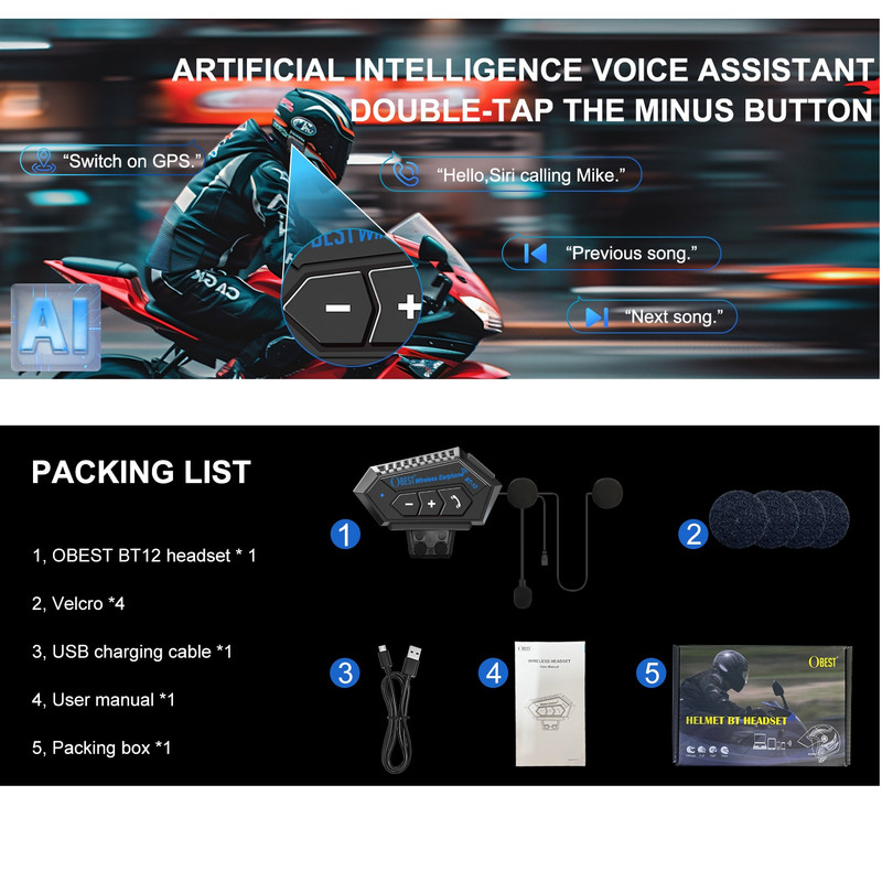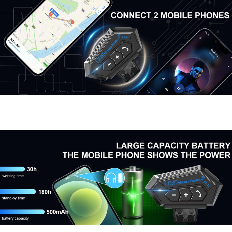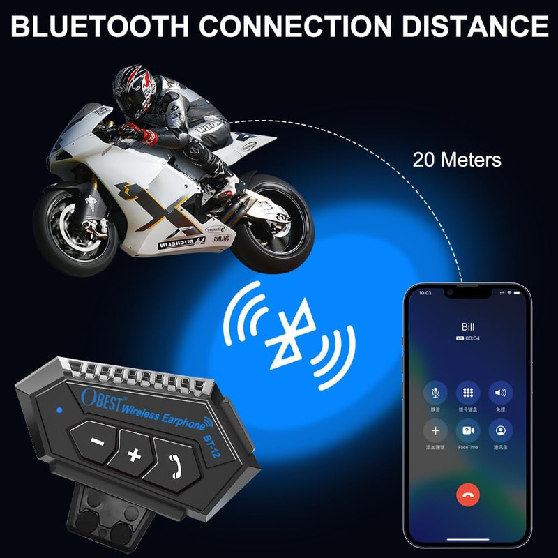 وضعیت اتصال: برد انتقال بلوتوث ۲۰ متر، کیفیت صدای پایدار. همچنین یک نشانگر باتری تلفن همراه وجود دارد که به شما امکان می‌دهد عملکرد باتری هدست بلوتوث موتورسیکلت را به صورت زنده کنترل کنید.