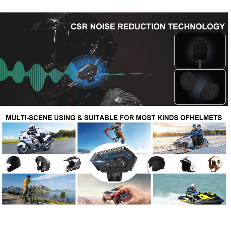 مناسب برای همه کلاه‌های ایمنی خیره‌کننده: ضخامت بلندگوی این هدست بلوتوث موتورسیکلت حدود 10 میلی‌متر است، توصیه می‌شود قبل از خرید بررسی کنید که آیا کلاه ایمنی موتورسیکلت شما شیاری حدود 10 میلی‌متر دارد یا خیر تا از ایجاد مشکلات غیرضروری جلوگیری شود. در صورت داشتن هرگونه سوال، لطفاً با ما تماس بگیرید.