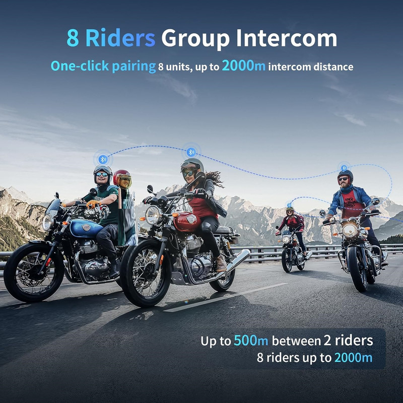 جفت شدن با یک کلیک برای ۱۰ نفر و ارتباط داخلی گروهی و قطع میکروفون : M1-S PLUS می‌تواند با یک کلیک ۱۰ دستگاه را جفت کند که بسیار راحت است. حتی اگر تماس به دلیل فاصله از طرف مقابل قطع شود، می‌توانید تا زمانی که در مدت زمان کوتاهی به محدوده تماس برگردید، به تماس ادامه دهید. اگر نمی‌خواهید هنگام صحبت کردن، دیگران صدای شما را بشنوند، M1S PLUS دارای عملکرد قطع میکروفون است که می‌تواند به حفظ حریم خصوصی شما کمک کند!