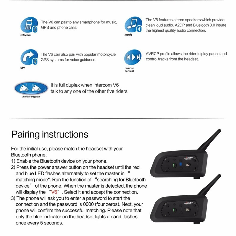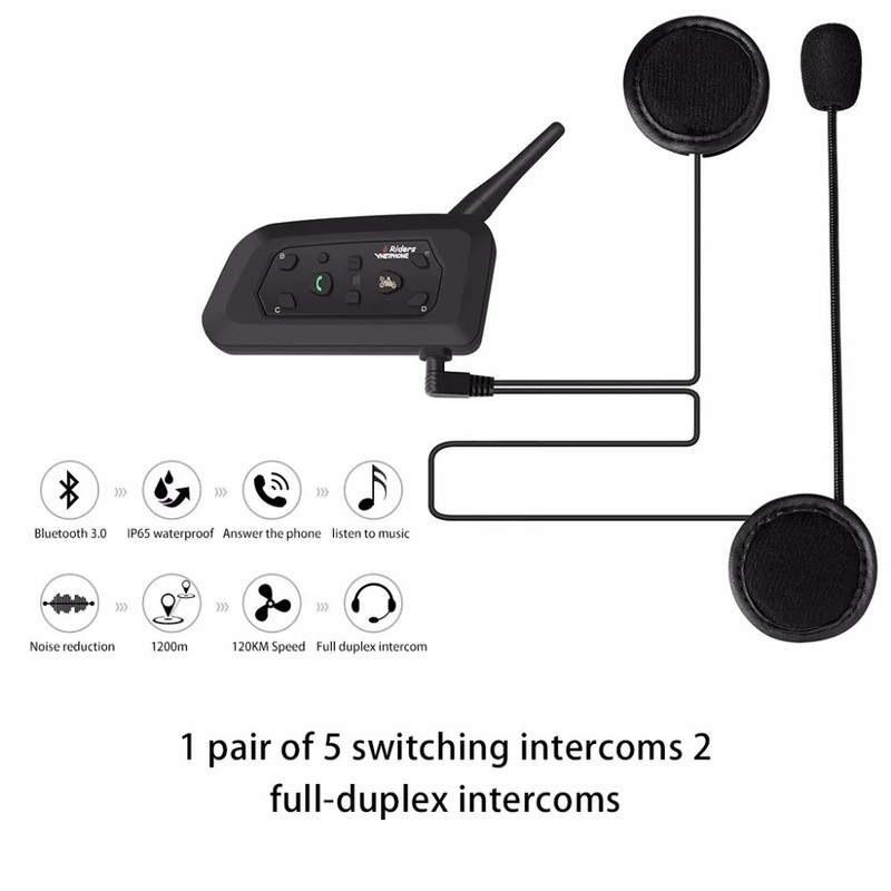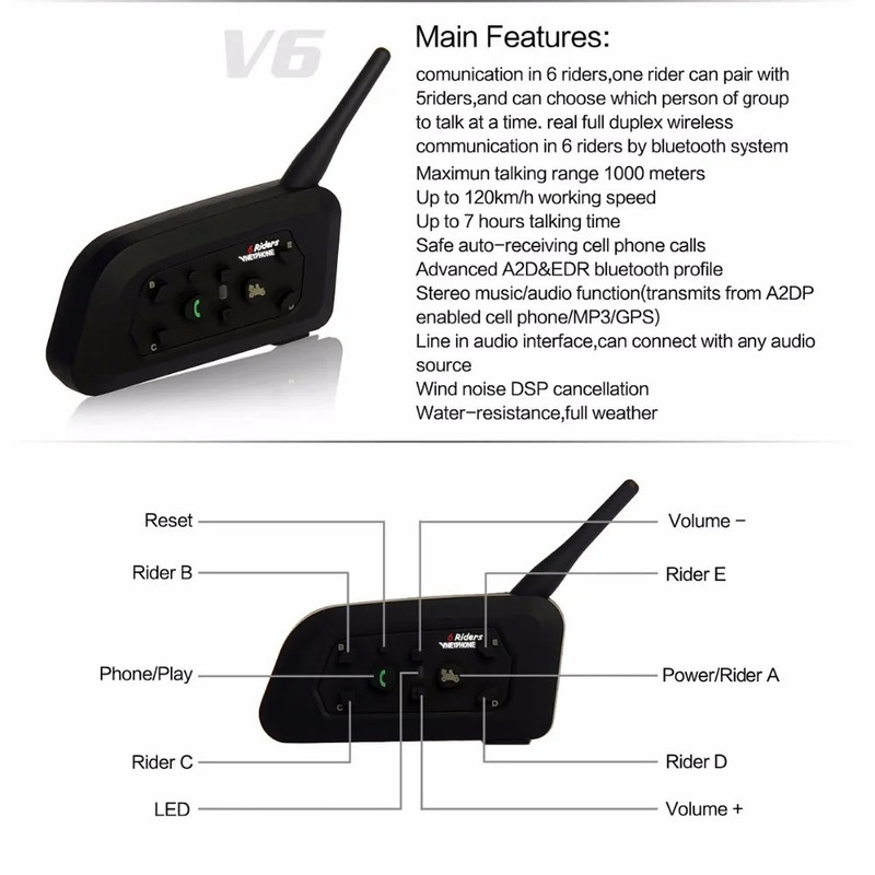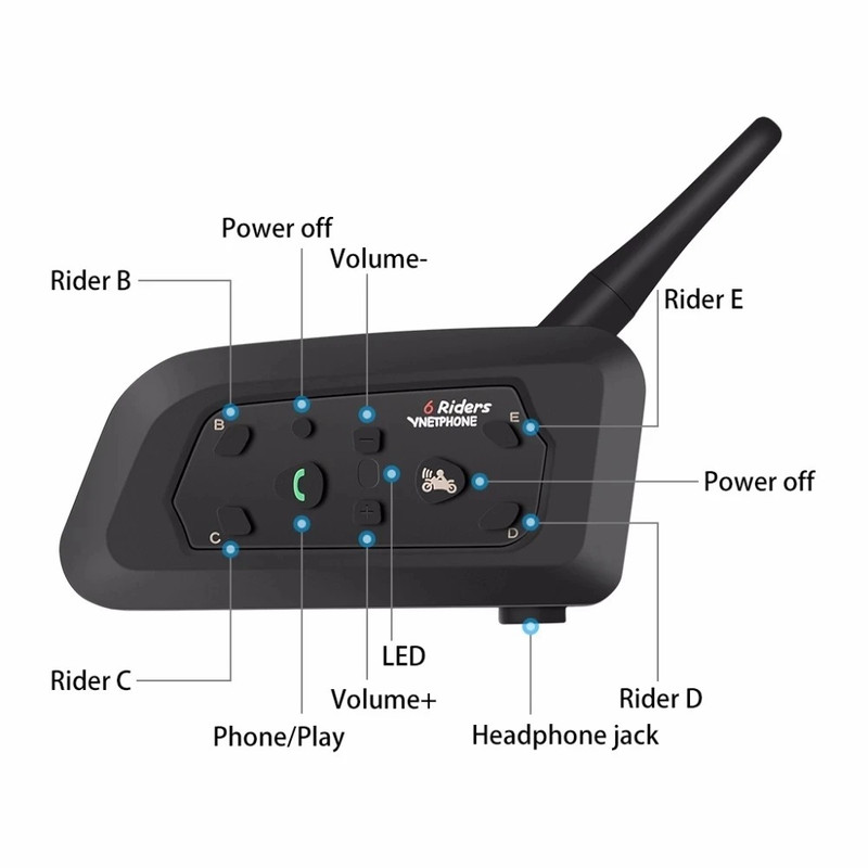 سایر توضیحات VNETPHONE V6 Riders چند منظوره برای موتورسیکلت، بلوتوث 5.1، 2 تکه مکالمه دو طرفه، 1 دستگاه اصلی می‌تواند 5 دستگاه فرعی را تغییر دهد فاصله مکالمه 800 متر (تقریباً 2600 فوت) اتصال خودکار به تماس زمان مکالمه 18 ساعت زمان آماده به کار 260 ساعت سطح ضد آب ip65