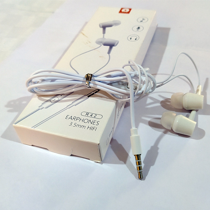 هدفون، هندزفری WUW R42 با طراحی ارگونومیک برای گوش و ظاهری زیبا میباشد.WUW R42 دارای کابلی مقاوم lمیباشد. R42 برای پخش موزیک مناسب بوده و از صدای بسیار خوبی برخوردار است، همچنین بر روی پنل یک کلید وجود دارد که میتوانید بوسیله آن به تماسهای ورودی پاسخ دهید و یا در هنگام پخش موزیک آن را استاپ و دوباره پلی کنید، همچنین با دو یا سه بار کلیک میتوانید در موزیک ها پیمایش نمایید و به موزیک قبلی یا بعدی بروید. این هندزفری بوسیله جک 3.5 اینچی به دستگاه و یا گوشی متصل میشود.