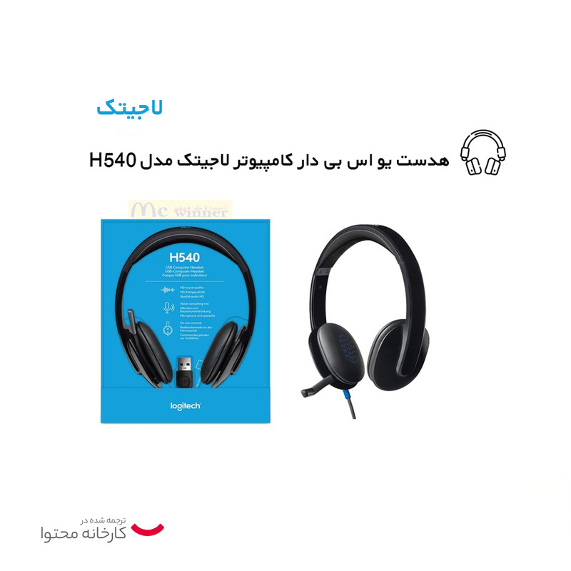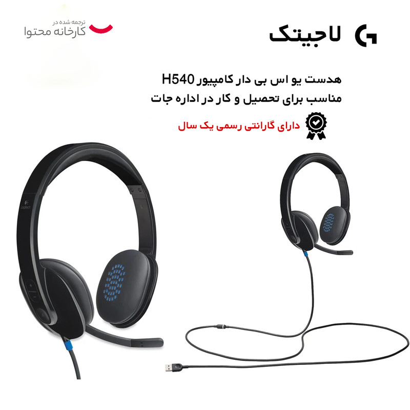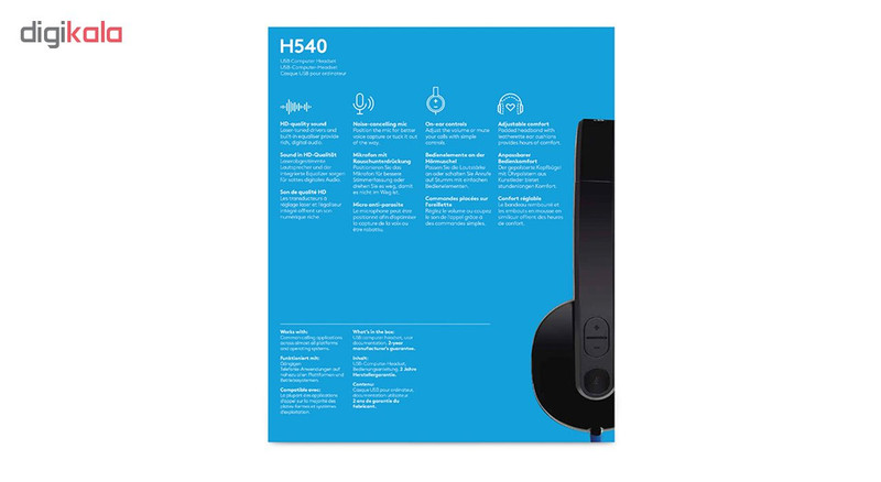 هدست «H540» محصولی از شرکت «لاجیتک» (Logitech) است. این هدست به شکل کابلی به کامپیوتر وصل میشود و برای اتصال آن، به یک پورت USB خالی در لپتاپ یا کامپیوترتان نیاز دارید. میکروفونی که روی هدست قرار گرفته، توسط بازویی پلاستیکی به یکی از کاپها وصل میشود. این میکروفون در قسمت اتصال به بدنه دارای لولایی است که میتوانید با استفاده از آن در زمان بیاستفاده ماندن میکروفون، آن را به بالا جمع کنید. میکروفون H540 لاجیتک دارای قابلیت کاهش نویز محیط است تا هنگام چت صوتی با دوستانتان بتوانید صدای خود را با کیفیت و شفافیت انتقال دهید. روی یکی از کاپها، دو دکمه برای افزایش و کاهش ولوم صدا و یک دکمه برای Mute کردن میکروفون در نظر گرفته شده است. در کنار دکمهی Mute، چراغی هم وجود دارد که فعال یا غیرفعالشدن Mute میکروفون را اعلام میکند. ازآنجاییکه احتمال میرود طول کابل اتصال هدفون برای خیلیها کوتاه باشد، دو عدد کابل افزایش طول USB با هدست همراه شده است. هریک از این کابلها، 30 سانتیمتر به طول کابل اصلی اضافه میکنند. اتصال هدست، بلافاصله پس از اتصال کانکتور USB برقرار میشود و برای شروع استفاده، لازم نیست هیچ برنامهی خاصی را نصب کنید.