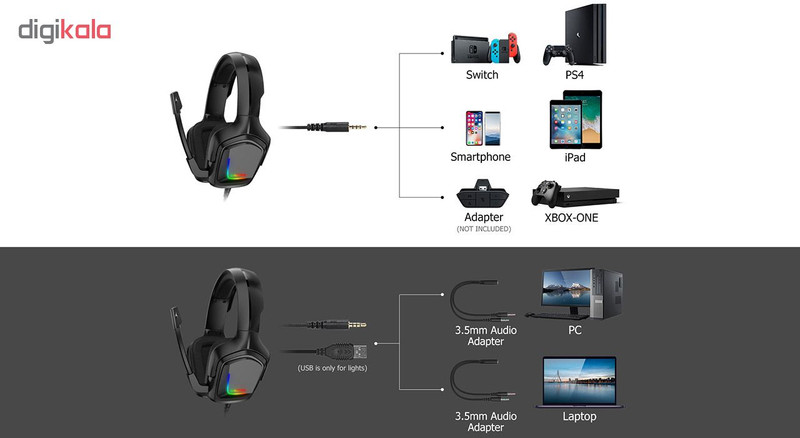 اگر قصد دارید برای کنسولتان هدفون مخصوص بازی تهیه کنید، هدفون مخصوص بازی اونیکوما مدل K20 یکی از گزینههایتان است. درایوری که برای این مدل تعبیه شده 50 میلیمتری است و همین اندازه بزرگ باعث شده تا کیفیت و شفافیت هدفون بیشتر از مدلهای دیگر باشد. هدبندی که برای این مدل تعبیه شده از چرم است و در استفاده دراز مدت خستهتان نمیکند. دلیل این ویژگی قابل تنفس بودن هدفون است. این مدل بازه فرکانسی 20 تا 20000 هرتز را پشتیبانی میکند. میکروفون این هدفون به قابلیت Noise Canceling مجهز شده که باعث شده تا صدایتان شفافتر به مخاطب برسد. اطراف کاپ این هدفون مموری فوم استفاده شده تا راحتتر روی گوش قرار بگیرد و شکل گوشتان را بگیرد. میکروفون این هدفون انعطافپذیر است. این ویژگی برای زمانی که قصد ندارید از میکروفون استفاده کنید کارایی دارد. برای کنترل آسانتر تنظیمات، این مدل به کلید مدیریت صدا مجهز شده است. این مدل در قسمت کاپی به نورهای RGB مجهز شده که با اتصال پورت USB به کنسول میتوانید از این ویژگی استفاده کنید.
