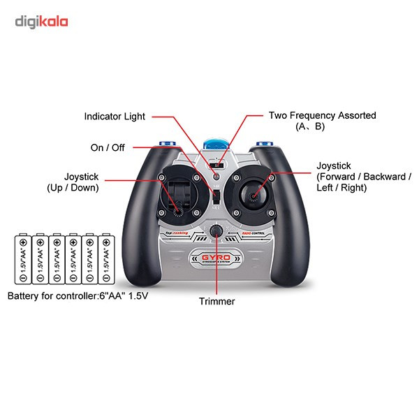 | سایر توضیحات | دارای فناوری (Gyro) جهت پایداری بیشتر به هنگام پرواز - خاموش شدن خودکار در حالت گیرکردن پروانهی هلیکوپتر - دارای چراغ جهت تشخیص هلیکوپتر در محیطهای کمنور و تاریک |