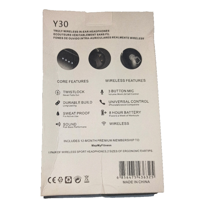 | سایر مشخصات | هدفون بلوتوث مدل Y30 _ این هدفون همراه با یک کابل شارژ میکرو یو اس بی عرضه می گردد _ این هدفون دارای کیس(مخزن) شارژ می باشد که با کمک آن می توانید چهار بار بصورت کامل هدفون ها را شارژ کنید و دیگر نیازی به همراه داشتن همیشگی شارژر ندارید. _ این هدفون از کیفیت بسیار خوبی برخوردار است و می توانید هم بصورت تک گوشی و هم دوگوشی از آن استفاده کنید. _ تمامی راهنمایی های لازم برای راه اندازی و اتصال این هدفون، در تصاویر موجود می باشد و همچنین یک جزوه راهنمای کوچک هم، همراه آن عرضه می گردد. _ ورودی مخزن شارژ از نوع میکرو یو اس بی می باشد و از ظرفیت 450 میلی آمپر برخوردار است _ گوشی ها از 55 می آمپر ساعت بهره می برند _ زمان برای شارژ شدن یک ساعت _ مناسب برای ورزشکاران،کوهنوردان و...... _ مناسب برای گیمینگ و موسیقی _ محدوده برد 10 الی 25 متر _ ضد آب _ ضد خش و ضربه _ مناسب برای اندروید و iOS _ TWIST LOCK _ 3BUTTON MIC : volume, Music, Call control _ دارای گواهینامه های CE و FC _ محصول 2021 میلادی _ محصول کشور چین |