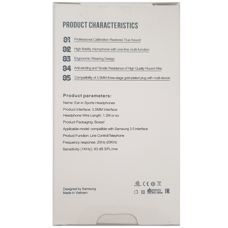 هدفون EO-IG955 ساخت ویتنام که از دسته هدفونهای سیمدار است، توسط جک 3.5 میلی متری به دستگاههای هوشمند متصل میشود ، این هندزفری دارای طراحی زیبا و ارگونومیک می باشد و با داشتن گوشی هایی به شکل کج به خوبی درون گوش قرار گرفته و بدون ایجاد مزاحمت کاربر می تواند ساعت های طولانی از آن برای شنیدن موسیقی ، مکالمه ، ورزش استفاده نمایید..کاربران با خرید ایرفون EO-IG955 دیگر لازم نیست نگران پیچ خوردن و درهمریختگی کابل هدفون باشند. زیرا که این هدفون دارای کابلی با روکش بافته شده و مقاوم در برابر گره خوردن و درهم پیچیدن است. کیفیت صدای عالی، متعادل و فوق العاده واضح و شفاف با ووفر 11 میلی متری و توییتر 8 میلی متری، تنظیم شده توسط AKG باعث تجربه شنیداری صدایی با کیفیت خواهد شد. میزان آمپدانس این هندزفری 32 اهم و حساسیت آن 93.2 دسی بل است و پاسخ فرکانسی 20 تا 20000 هرتز را پوشش میدهد. روی کابل این محصول دکمههایی به منظور تنظیم میزان صدا و پاسخ به تماسهای تلفنی مشاهده میشود. همانطور که در تصویر مشخص است، هاین مدل هدفون از نوع هدفونهای توگوشی است. درصورتی که اندازه سرگوشی این هدفون برای کاربران مناسب نباشد، میتوانند از سرگوشیهای یدک موجود در جعبه استفاده کنند. در ارتباط با سازگاری هدفون EO-IG955 نیاز به ذکر است که این مدل برای گوشیهای موبایل S8 و S8 Plus ساخته شده که البته با اسمارت فونهای دیگر به خصوص محصولات سامسونگ سازگاری دارد.