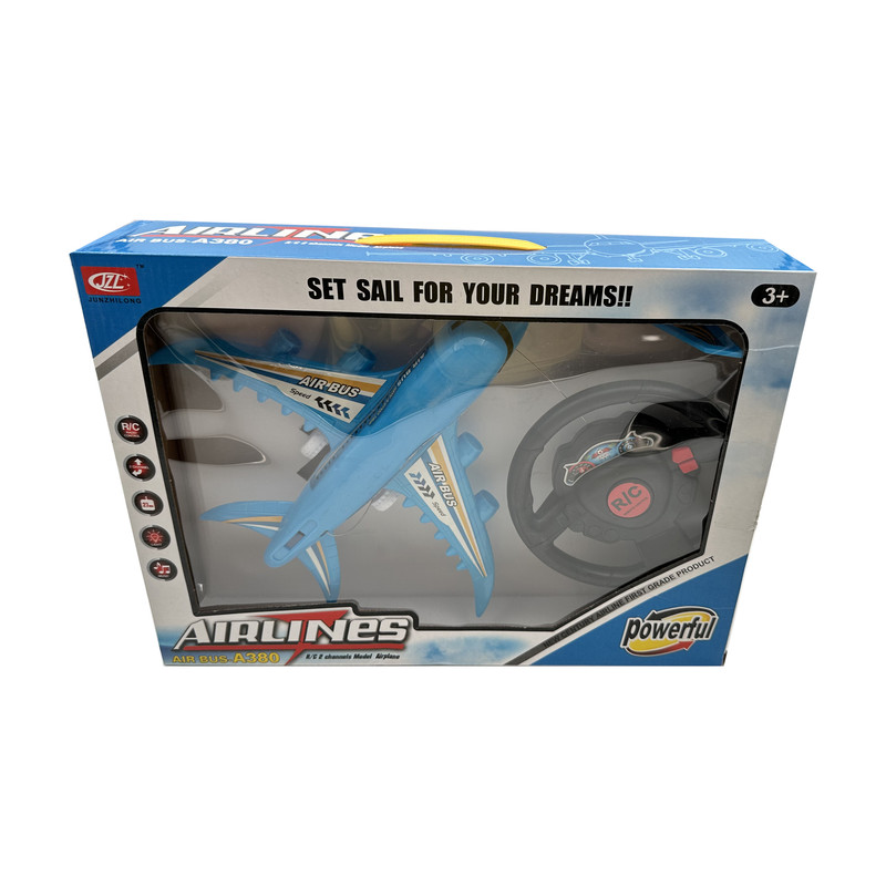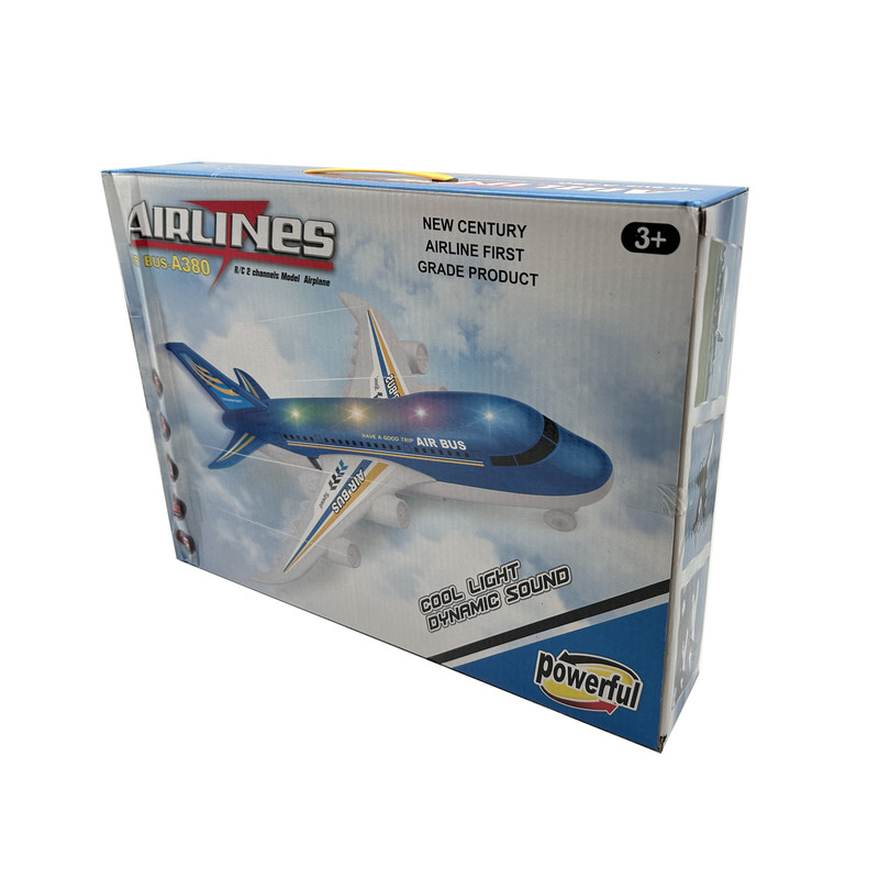 هواپیما مسافربری ایرباس A380 در 2 رنگ سفید و آبی می باشد. این هواپیما دارای کنترل طرح فرمان بوده و 2 کانال می باشد به این معنا که با کنترل فقط به عقب و جلو حرکت می کند. همچنین این هواپیما دارای چراغ و موزیک می باشد و طول آن تقریبا 25 سانتی متر است.