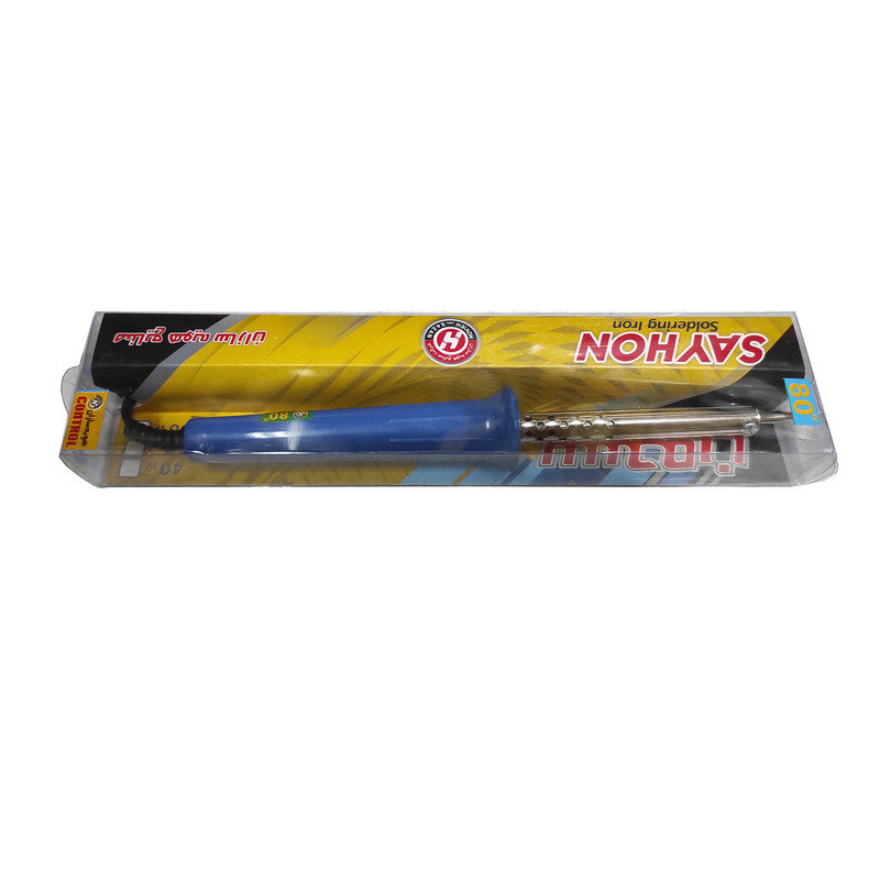 هویه80 وات هویه سازان یک ابزار پرکاربرد برای لحیم کاری درکارهای الکترونیکی میباشد,درکار لحیم کاری هر چند هویه ابزار اصلی میباشد اما به لوازمی مانند سیم لحیم,روغن و پایه هویه نیاز میباشد.در هنگام استفاده به شما توصیه میشود حتما از پایه هویه جهت جلوگیری از آسیبهای احتمالی استفاده کنید.سیم لحیم یا همان ماده اتصال دهنده در لحیم کاری مخلوطی از قلع وسرب است.در لحیم کاری از سیم لحیمی باید استفاده شود که حداقل قلع آن40 باشد.بطور مثال اگر در قرقره سیم لحیم عدد60/40 نوشته باشد یعنی قرقره فوق 60 درصد قلع و 40 درصد سرب دارد.در کارهای الکترونیکی باید از درصد قلع بیشتر استفاده نمائید که بهترین نوع آن قلع63% میباشد.