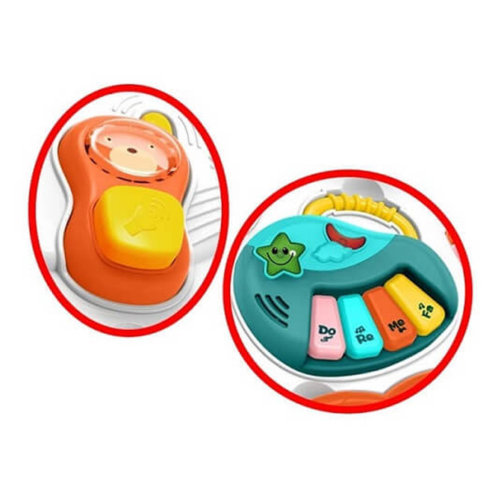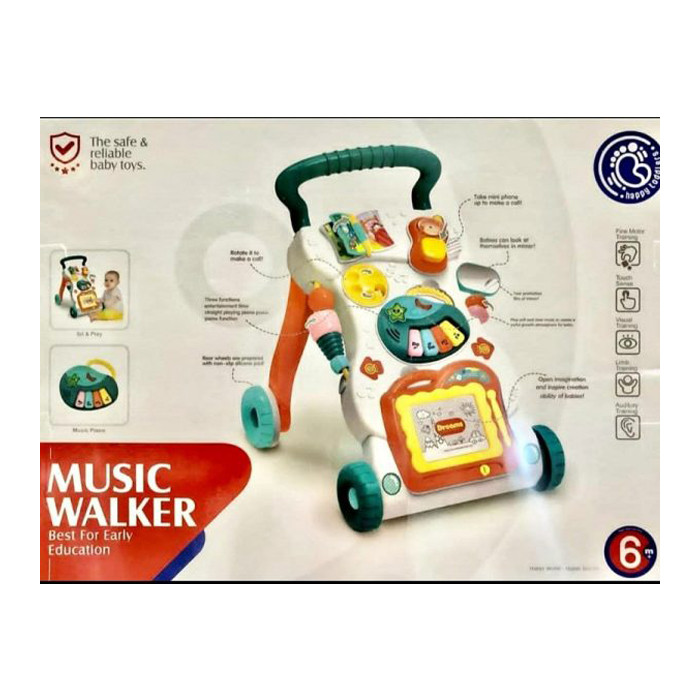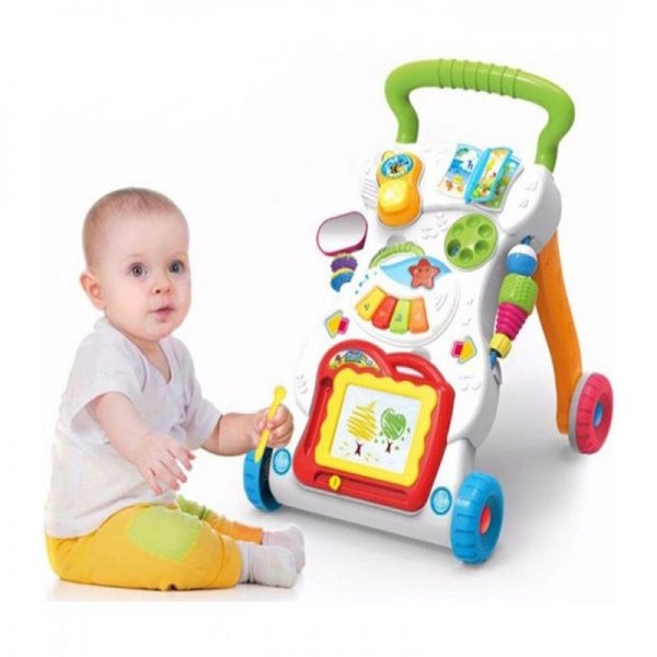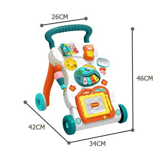 | سایر توضیحات | دارای موبایل، دفترچه، صفحه آهنربایی، شماره گیر تلفن و… امکان استفاده به صورت نشسته و ایستاده دارای چند عدد جغجغه در کناره واکر, قابلیت استفاده جداگانه از لوازم موجود بر روی واکر مناسب برای آموزش اعداد، رنگها، اشکال و صداها کارکرد با دو باتری قلمی 1٫5 ولتی |