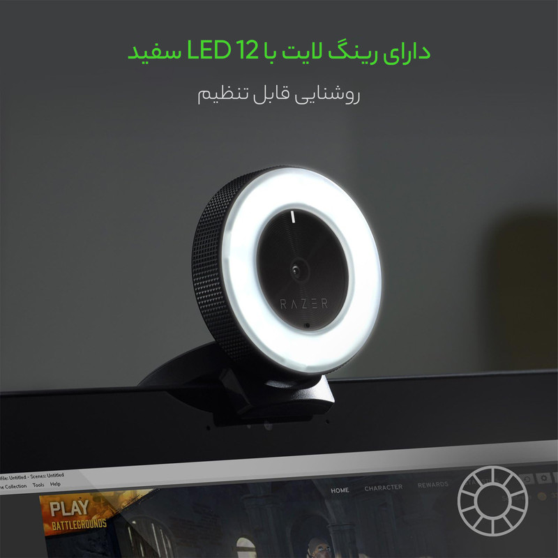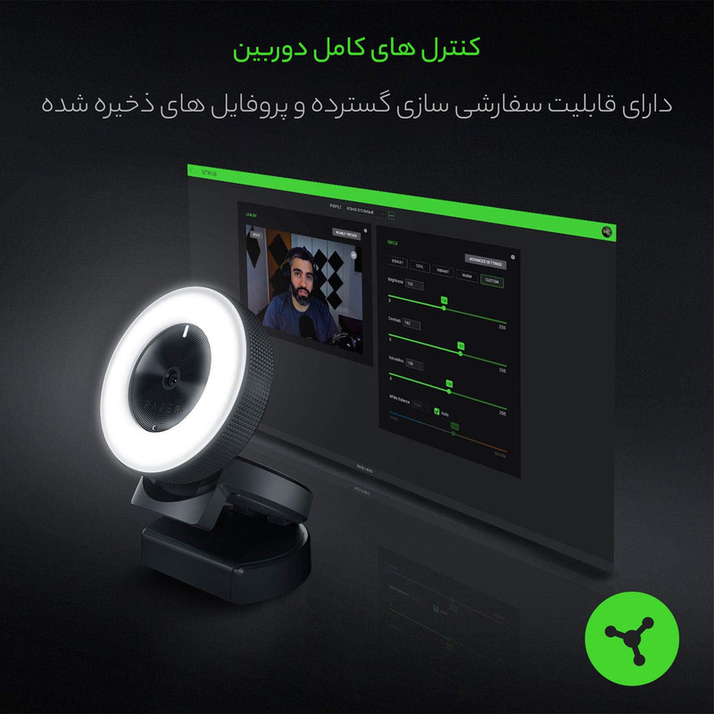 با وبکمهای Kiyo Streaming در هر زمان با دوستان، همکاران و یا طرفداران خود در تماس باشید. وجود ویژگیهایی نظیر نورپردازی استریویی، رزولوشن FHD و زاویه دید گسترده، این محصول را به یکی از بهترین گزینههای موجود برای استریم بازی، تماسهای تصویری و ویدئو کنفرانسهای کاری تبدیل کرده است. Razer Kiyo یک دوربین قدرتمند دسکتاپ برای استریمینگ است که قابلیت استریم 60 fps را هم دارد. در ادامه ی تلاش های ریزر برای جلب نظر استریمرها این کمپانی دوربین Kiyo را روانه ی بازار کرد. با کمک دسترسی کامل به تنظیماتی نظیر میزان نور، کنتراست، اشباع رنگ و تعادل سازی میزان سفیدی به بهترین تصویر ممکن دست پیدا کنید. شما همچنین میتوانید از طریق نرم افزار Synapse 3 پروفایلهای مخصوص خود را ساخته و یا از میان پروفایلها و تصاویر پیش فرض موجود، گزینهی مورد نظر خود را انتخاب کنید. وبکمهای Kiyo Streaming شما را از تمامی نورپردازیها و رینگلایتهای مختلف در هنگام استریم بینیاز خواهند کرد. این محصول با ایجاد نورپردازی ملایم و کاهش سایههای ایجاد شده تصاویر شما را به بهترین شکل ممکن ارسال و ظبط خواهد کرد. همچنین امکان تنظیم سطح نورپردازی به شما اجازه میدهد تا با توجه به نیاز خود میزان نور مورد نظر را اعمال کنید. وجود رزولوشن 720P و سرعت فیلم برداری 60 فریم بر ثانیهای به این معنا است که بینندگان و دنبال کنندگان شما نیز میتوانند تصاویر بازی را با همان کیفیت و نرخ فریم مشاهده کنند. همچنین امکان استریم با کیفیت 1080P و سرعت فیلم برداری 30 فریم بر ثانیهای نیز فراهم شده است.
