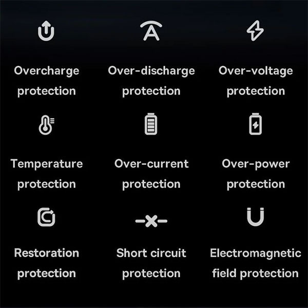 پاوربانک بیسوس PPXJ060001 دارای سطوح محافظتی چند گانه بوده. این پاور بانک در برابر افزایش دما، اتصال کوتاه، اثر مغناطیسی، افزایش یا کاهش ولتاژ و جریان و ... از گوشی شما محافظت خواهد کرد. همچنین این پاوربانک را میتوانید با خود به هواپیما ببرید.