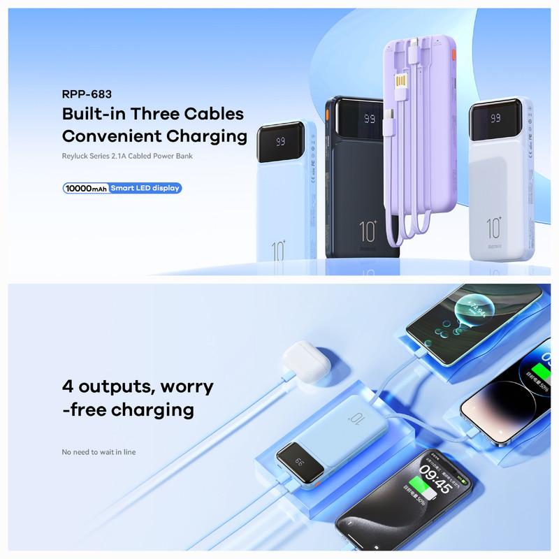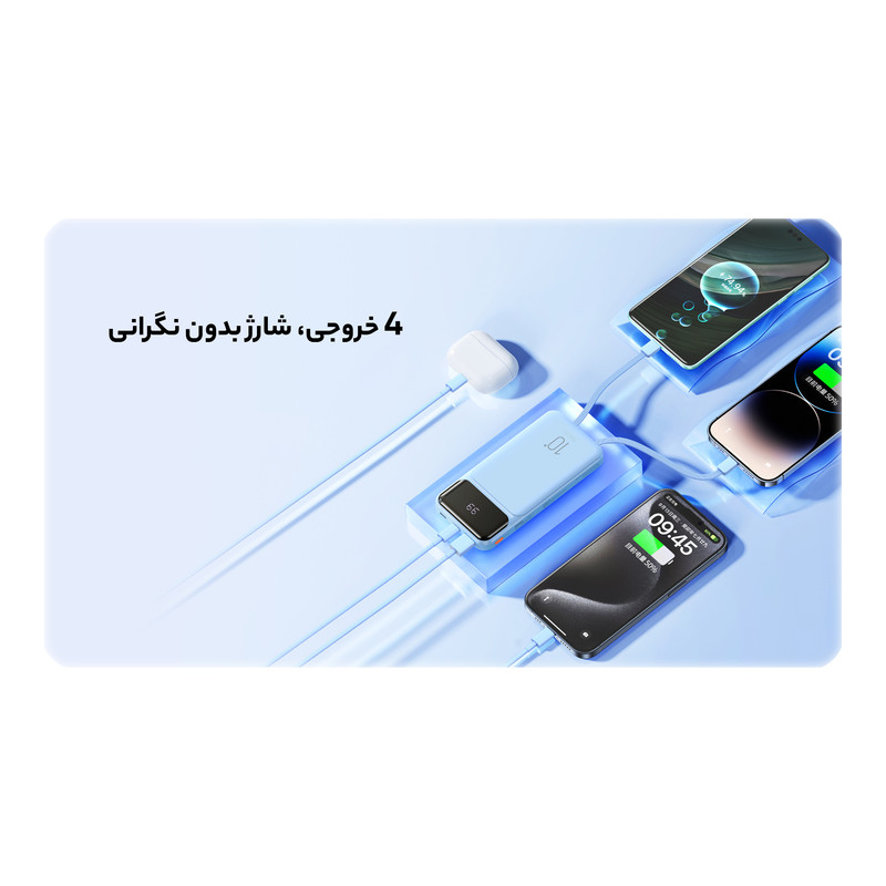 | مشخصات فنی | ظرفیت 10000 میلی آمپر ساعت دارای 1 عدد کابل متصل به پاوربانک (کابل سرخود) تایپ c با سرعت 10.5W دارای 1 عدد کابل متصل به پاوربانک (کابل سرخود) لایتنینگ اپل با سرعت 10.5W دارای 1 عدد پورت تایپ سی(خروجی و ورودی) و دارای 1 عدد پورت USB که مجموعا 4 گوشی را میتوان با این پاوربانک شارژ کرد دارای کابل usb متصل به بدنه جهت شارژ پاوربانک که مجوعا این پاور بانک 3 کابل متصل به بدنه دارد و شما را از هر کابلی بی نیاز میکند |