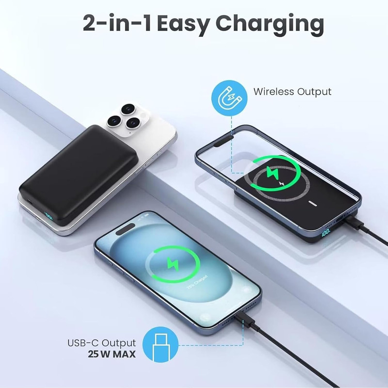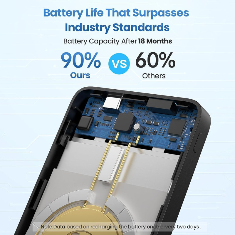 | مشخصات فنی | Snap-Charge-GO:باتری مغناطیسی داخلی ما با ظرفیت عظیم 10800 میلیآمپر ساعت، میتواند آیفون 15 پرو را تا 1.9 بار به طور کامل شارژ کند، بنابراین همیشه در جریان شارژ خواهید بود. با این شارژر قابل حمل و ایمن، میتوانید در هر زمان و هر مکان و بدون دردسر سیم، از تماس ویدیویی، فیلم، موسیقی و سلفی لذت ببرید، ایدهآل برای تعطیلات، سفر و کمپینگ. مغناطیس فوقالعاده قوی: این شارژر قابل حمل مغناطیسی مجهز به آهنرباهای فوقالعاده قوی است که محکم به پشت آیفونهای سری و ۱۵/۱۴/۱۳/۱۲/و 16 میچسبد تا شارژ بیسیم مغناطیسی ۷.۵ واتی را محقق کند. آیفون و باتری خود را با یک ضربه محکم و ناگهانی تراز کنید. با مشکلات قطع اتصال ناشی از عدم تراز شارژ بیسیم خداحافظی کنید. پاوربانک جیبی: پاوربانک بیسیم مغناطیسی با ظرفیت بسیار بالا و طراحی فوقالعاده باریک - فقط 10.3 x 6.8 x 2.1 سانتیمتر و وزن 202 گرم. اندازه ایدهآل برای حمل، مناسب برای سفر، کار و غیره. ایمنی شما، اولویت ما:شارژر بیسیم قابل حمل HETP دارای یک تراشه هوشمند با کیفیت بالا و محافظت چندگانه سیستم، مانند محافظت در برابر ولتاژ بیش از حد، محافظت در برابر شارژ بیش از حد، محافظت در برابر جریان بیش از حد و محافظت در برابر اتصال کوتاه است. سیستم ایمنی Multi-Protect تضمین میکند که دستگاههای شما از خطرات احتمالی محافظت میشوند و تجربه شارژ بدون نگرانی را برای شما فراهم میکند. |