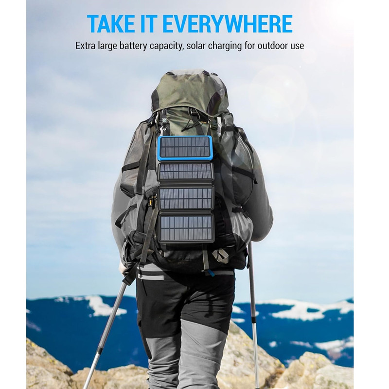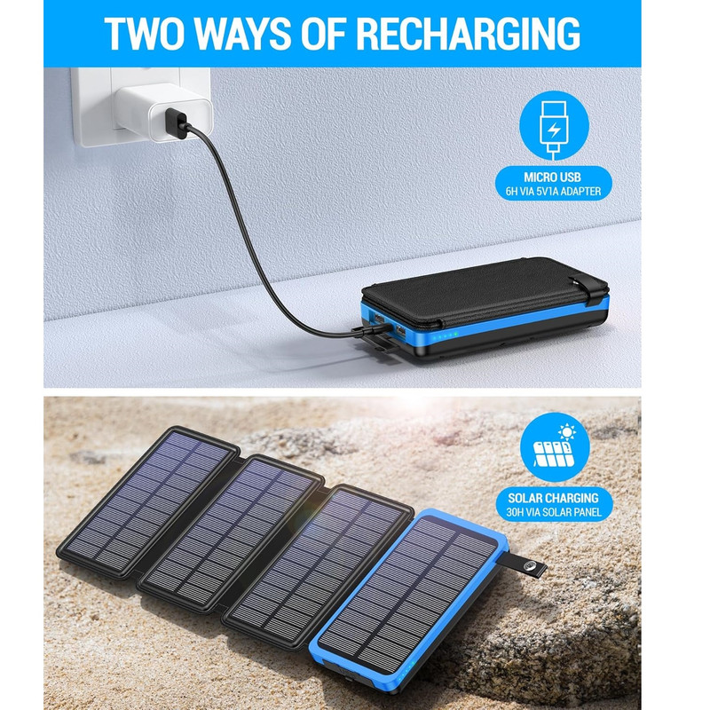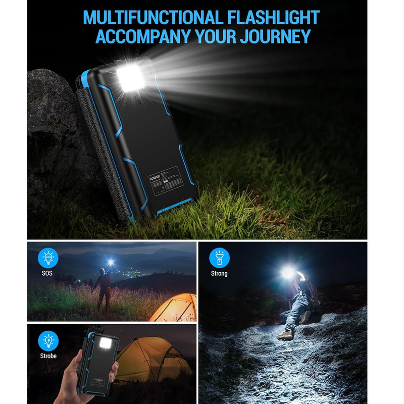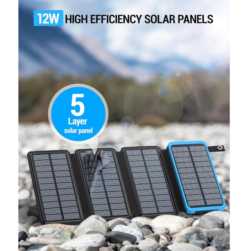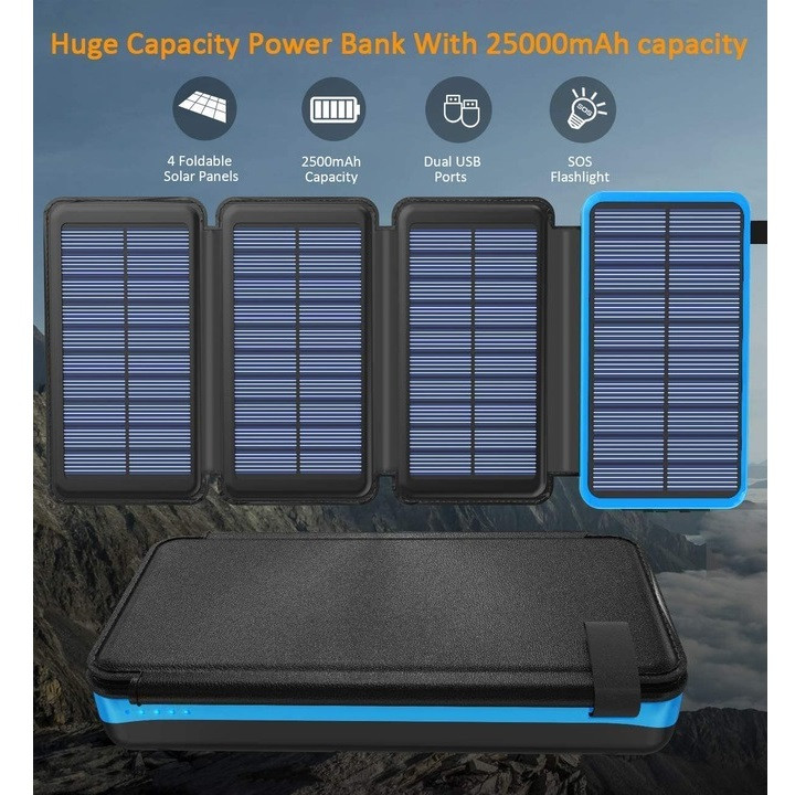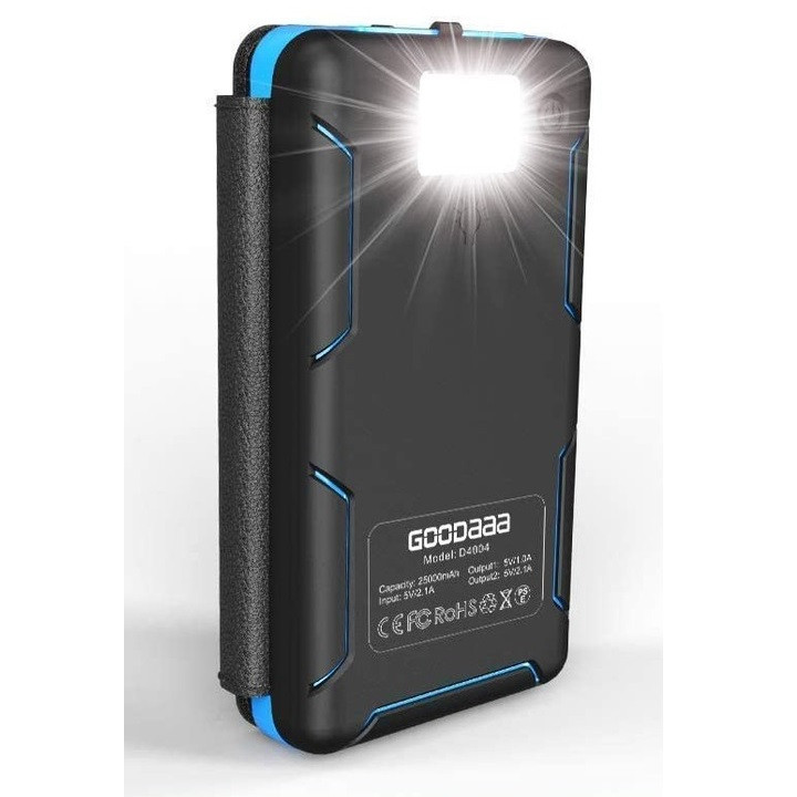 | مشخصات فنی | طراحی بادوام و مستحکم، تلفن هوشمند شما را حتی در مکانهای بدون برق کار میکند. طراحی تاشو همچنین امکان حمل و نقل در کوله پشتی و در حین حرکت را فراهم می کند. دو درگاه USB به طور کامل امکان شارژ همزمان دو دستگاه را می دهد و در نتیجه زمان شارژ را به میزان قابل توجهی کاهش می دهد. پاوربانک فضای باز: یک لامپ کمپینگ روشن نیز در پاوربانک تعبیه شده است. پاوربانک خورشیدی GOODaaa ابزاری کاربردی برای کمپینگ، پیاده روی، ماهیگیری، مسافرت و سایر فعالیت های در فضای باز است. |